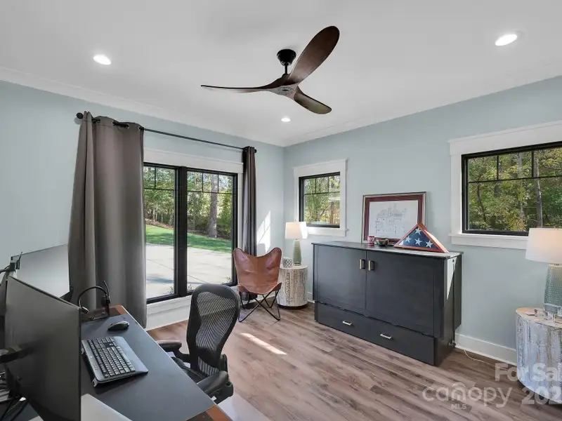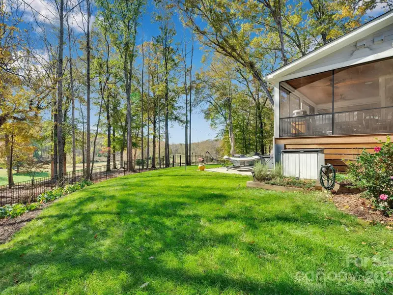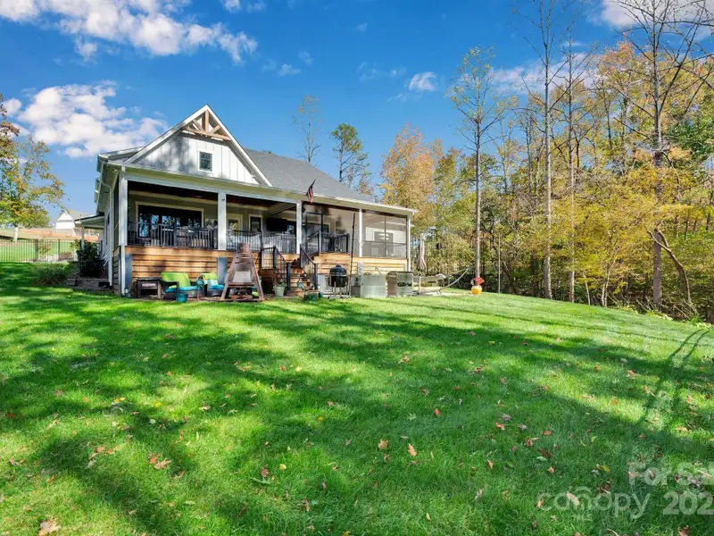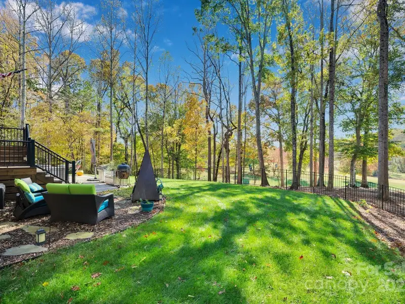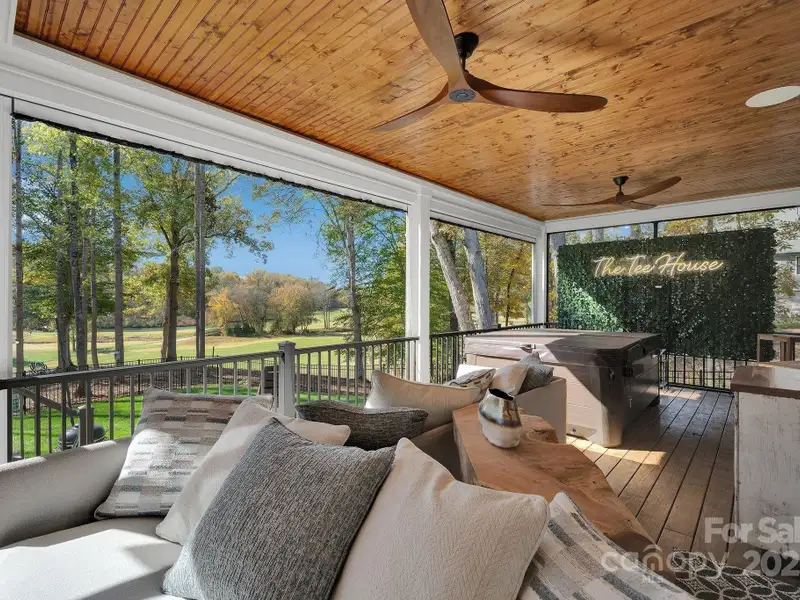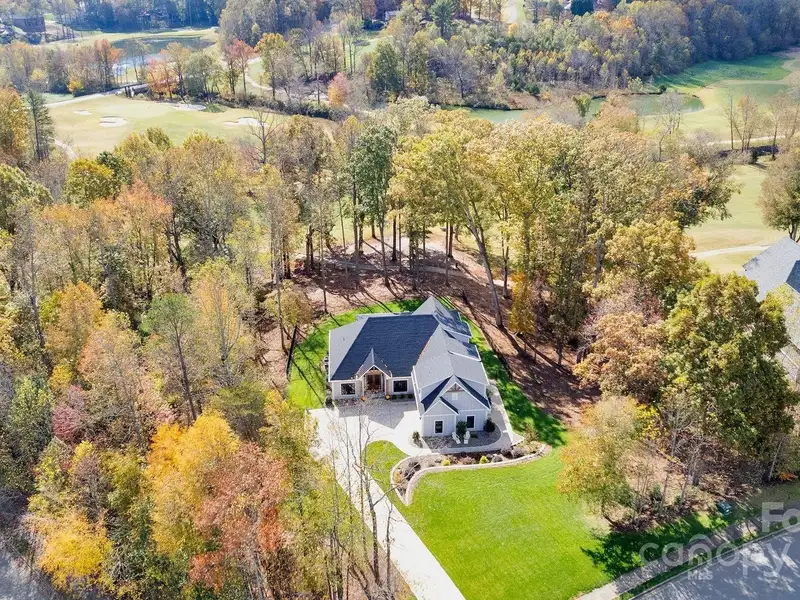 A truly exceptional, custom-built home perfectly positioned on 1.23 acres overlooking the 13th and 14th fairways of the prestigious Jones Golf Course at Rock Barn. Completed in 2022, this home offers privacy and stunning sunset and water feature vistas; a rare offering within this sought-after community. The open-concept main level features 10 ft ceilings, custom trim and wainscoting, crown coping, and casement picture windows framing the beautiful golf course views. The chef's kitchen is a showpiece, boasting a 48" dual-fuel range with commercial-grade hood, Cafe appliances with beverage center, marble backsplash to the ceiling, oversized quartz island with prep sink, instant hot water, glass rinser, pot filler, and custom solid maple cabinetry with built-in mixer lift, open shelving, and under cabinet lighting. A walk-through pantry with hidden Murphy door adds both charm and practicality. The primary suite is a private retreat featuring an exquisite spa-style wet room with curbless marble shower (dual heads + rain shower) and soaking tub enclosed in marble, along with a custom-built closet system and direct access to the laundry room for convenience. All bathrooms feature designer tile, high-end fixtures, and retractable sink heads. Outdoor living is at its best here. Enjoy a screened porch with retractable panels for an unobstructed view, a saltwater hot tub, and a fully equipped outdoor kitchen with sink, refrigerator, and countertop. Step down to a paver patio with a Pyro fire pyramid and under-deck storage space. Even more, the yard includes full irrigation, landscape lighting, and a fenced backyard. Additional highlights include an encapsulated crawl space, whole-house water filtration system, tankless gas recirculating water heater, and Generac generator with a dedicated panel for backup power. Three HVAC zones ensure year-round comfort. LP SmartSide siding, a stone mailbox, and flemished double front doors add timeless curb appeal. The oversized garage is designed for convenience with epoxy flooring, insulated doors, side-mount quiet lifts, a utility sink, hot/cold water spigot, and storage shelving. A separate golf cart bay and EV prewire offer flexibility for modern living. Every space has been maximized with thoughtful design; from oversized bedrooms with ample closets to a vaulted foyer with tongue-and-groove bead board ceiling. Even practical details have been elevated, like the central vacuum system with in-wall retractable hoses, and step lighting on the staircase. Become a member of the Rock Barn Country Club and enjoy access to world-class amenities including championship golf courses, a luxurious spa (do not need to be a member to access spa), fitness center, fine dining, and more; all within a peaceful, beautifully maintained setting. Experience the best of Rock Barn living and call 4111 Ridge Rd. NE your new home!