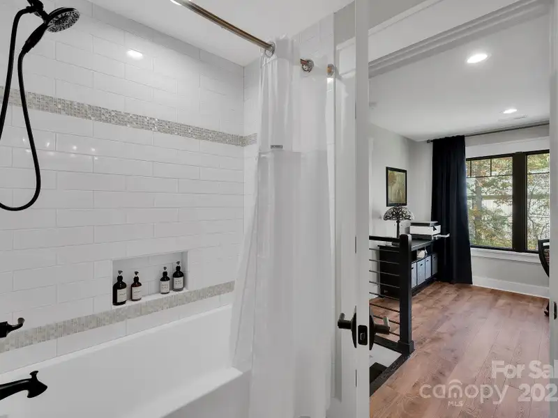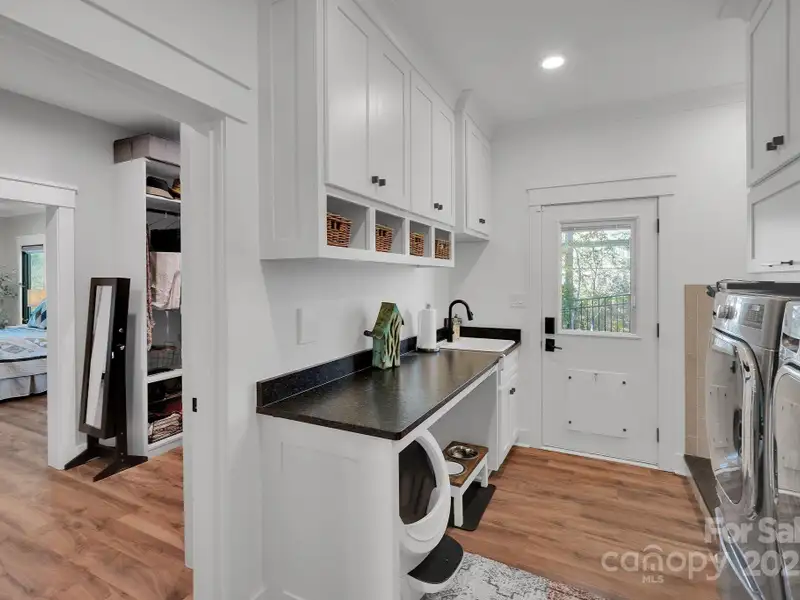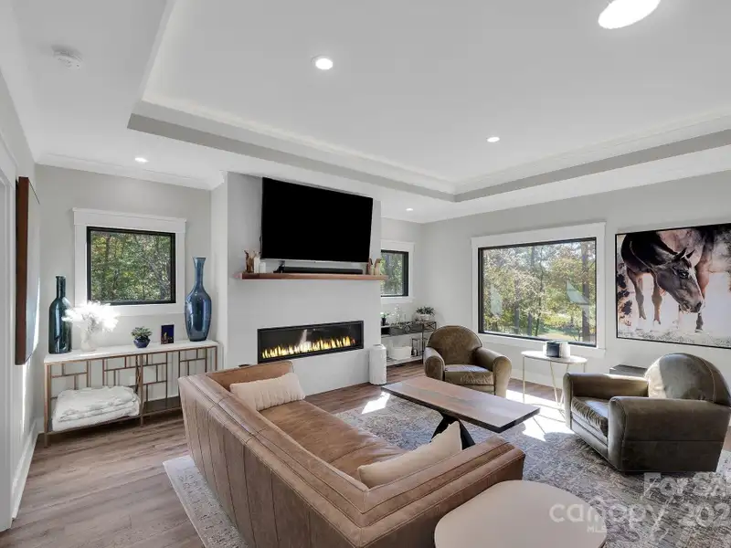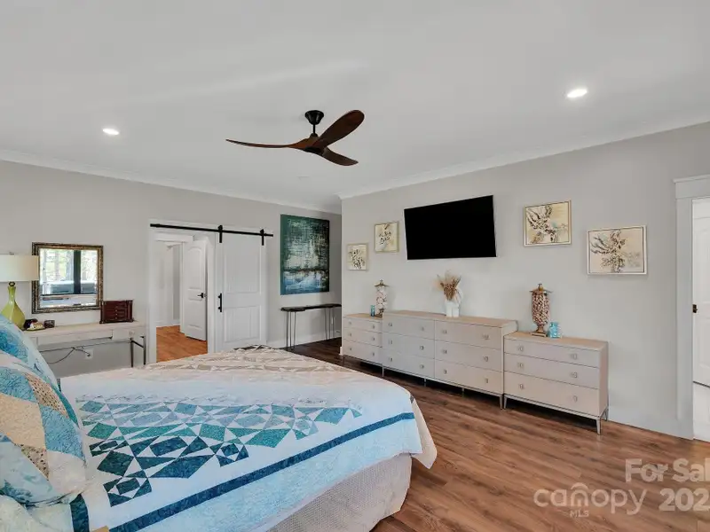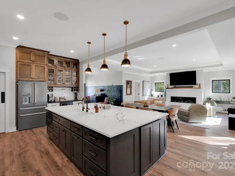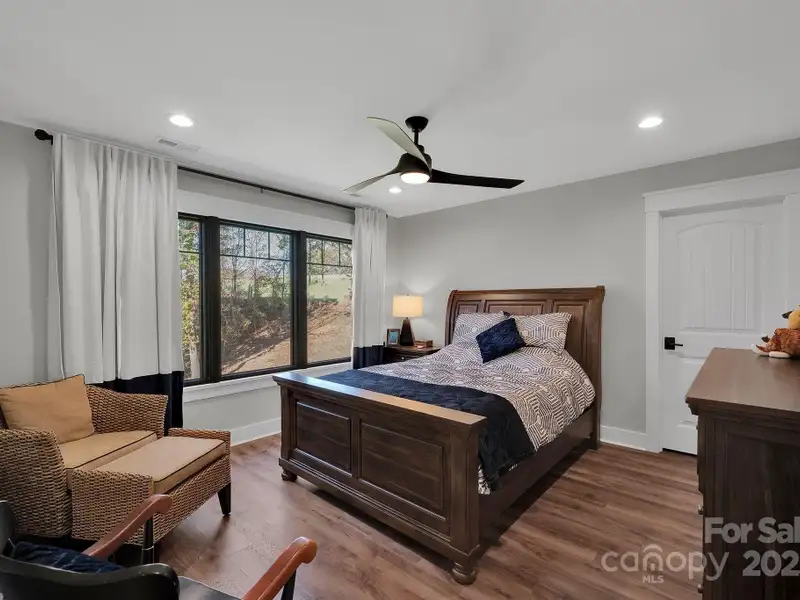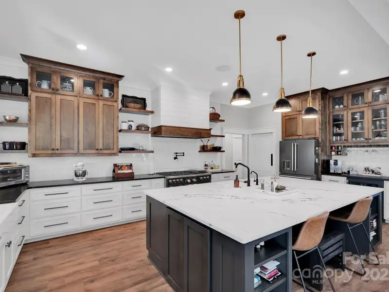 A truly exceptional, custom-built home perfectly positioned on 1.23 acres overlooking the 13th and 14th fairways of the prestigious Jones Golf Course at Rock Barn. Completed in 2022, this home offers privacy and stunning sunset and water feature vistas; a rare offering within this sought-after community. The open-concept main level features 10 ft ceilings, custom trim and wainscoting, crown coping, and casement picture windows framing the beautiful golf course views. The chef's kitchen is a showpiece, boasting a 48" dual-fuel range with commercial-grade hood, Cafe appliances with beverage center, marble backsplash to the ceiling, oversized quartz island with prep sink, instant hot water, glass rinser, pot filler, and custom solid maple cabinetry with built-in mixer lift, open shelving, and under cabinet lighting. A walk-through pantry with hidden Murphy door adds both charm and practicality. The primary suite is a private retreat featuring an exquisite spa-style wet room with curbless marble shower (dual heads + rain shower) and soaking tub enclosed in marble, along with a custom-built closet system and direct access to the laundry room for convenience. All bathrooms feature designer tile, high-end fixtures, and retractable sink heads. Outdoor living is at its best here. Enjoy a screened porch with retractable panels for an unobstructed view, a saltwater hot tub, and a fully equipped outdoor kitchen with sink, refrigerator, and countertop. Step down to a paver patio with a Pyro fire pyramid and under-deck storage space. Even more, the yard includes full irrigation, landscape lighting, and a fenced backyard. Additional highlights include an encapsulated crawl space, whole-house water filtration system, tankless gas recirculating water heater, and Generac generator with a dedicated panel for backup power. Three HVAC zones ensure year-round comfort. LP SmartSide siding, a stone mailbox, and flemished double front doors add timeless curb appeal. The oversized garage is designed for convenience with epoxy flooring, insulated doors, side-mount quiet lifts, a utility sink, hot/cold water spigot, and storage shelving. A separate golf cart bay and EV prewire offer flexibility for modern living. Every space has been maximized with thoughtful design; from oversized bedrooms with ample closets to a vaulted foyer with tongue-and-groove bead board ceiling. Even practical details have been elevated, like the central vacuum system with in-wall retractable hoses, and step lighting on the staircase. Become a member of the Rock Barn Country Club and enjoy access to world-class amenities including championship golf courses, a luxurious spa (do not need to be a member to access spa), fitness center, fine dining, and more; all within a peaceful, beautifully maintained setting. Experience the best of Rock Barn living and call 4111 Ridge Rd. NE your new home!