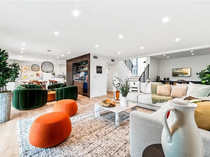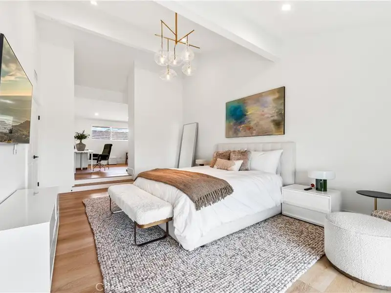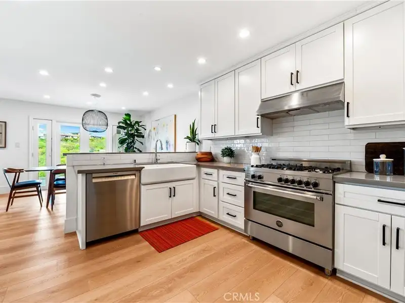 The chef-inspired kitchen is a showstopper, featuring crisp white shaker cabinets, gleaming quartz countertops, and high-end stainless steel appliances, including a Italian 5-burner stove, LG refrigerator, a brand-new dishwasher, and a large walk-in pantry for all your culinary needs.