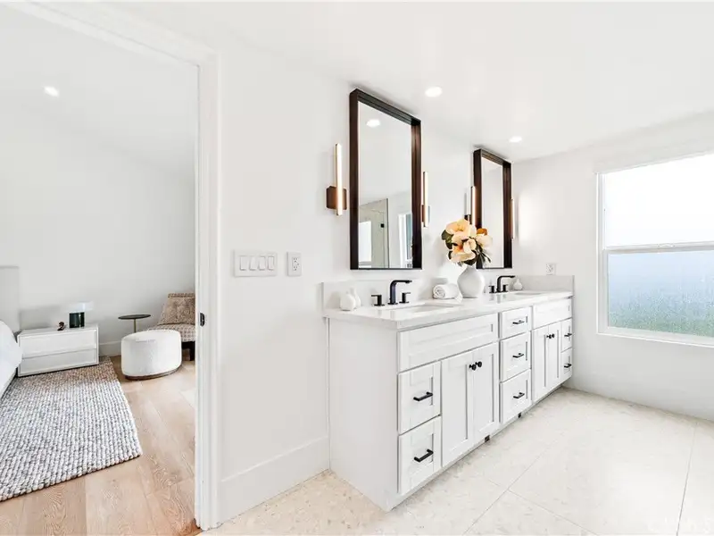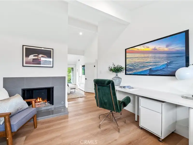 Upstairs, the spacious primary suite offers the ultimate retreat, with breathtaking canyon and ocean views from your private balcony — perfect for a quiet morning coffee or a sunset evening. The suite includes a cozy gas fireplace and a luxurious en-suite bath, with dual vanities, quartz countertops, a large walk-in shower, and a custom-built closet with ample storage. Two additional bedrooms provide space for family or guests, each offering comfort and privacy.
