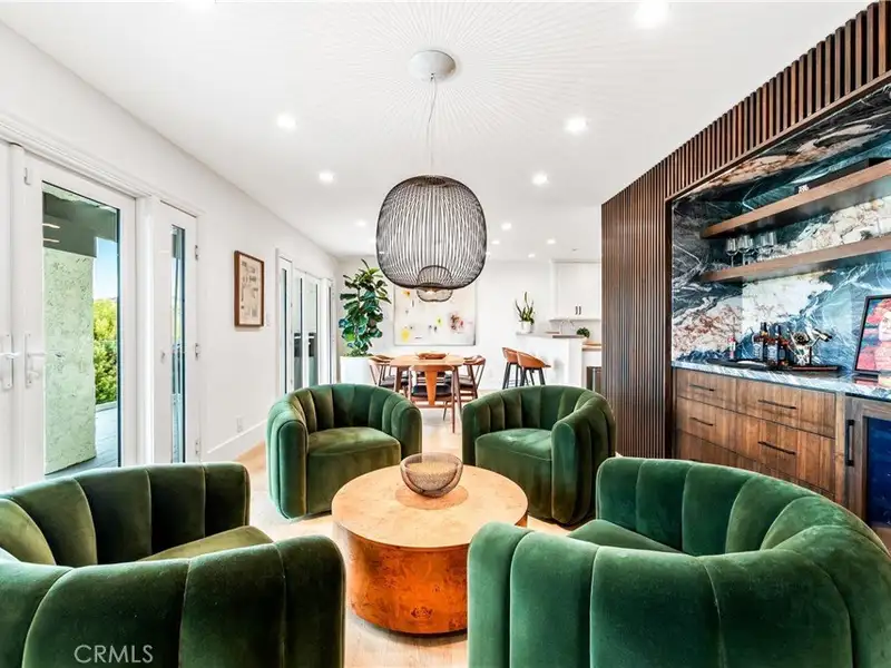 The home’s open floor plan is ideal for entertaining, with a seamless flow from the living room to the sitting area and dining room. A built-in wine fridge and additional storage create a stylish yet functional space. A versatile bonus room can easily be used as an office, playroom, or home gym.