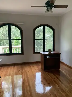 P. B. Hall de entrada; amplio living comedor con estufa hogar y biblioteca, con ventanales al parque y pileta de natación, recientemente construida. La cocina está recién remodelada e integrada con barra y mesada, ambiente muy funcional; escritorio (opcional dormitorio ); toilet de recepción con ducha; habitación y baño de servicio; lavadero; cochera cubierta para un auto.