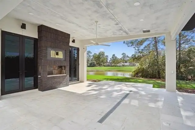- Oversized covered patio with gas fireplace