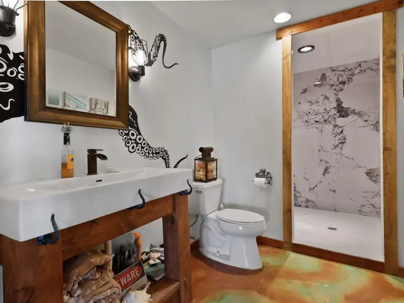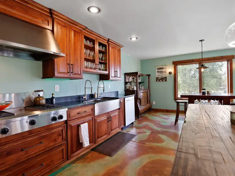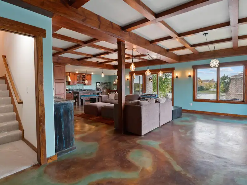 - Walkout level with acid stained concrete floors