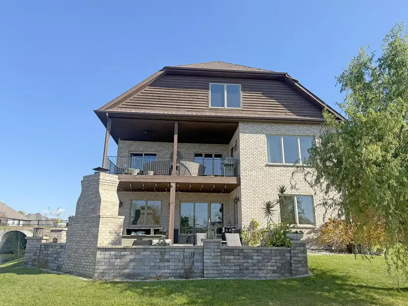 - Brick and stone exterior with water views