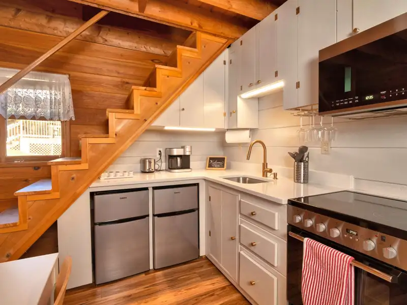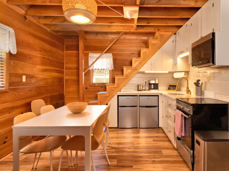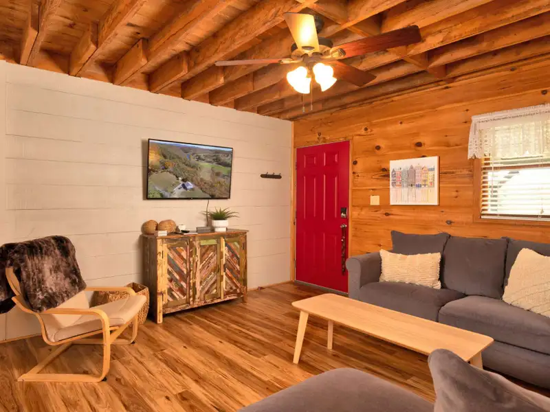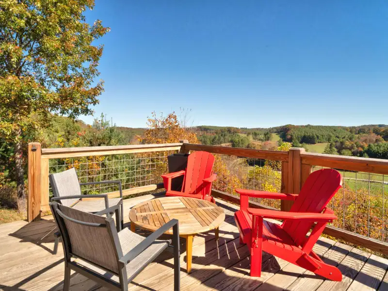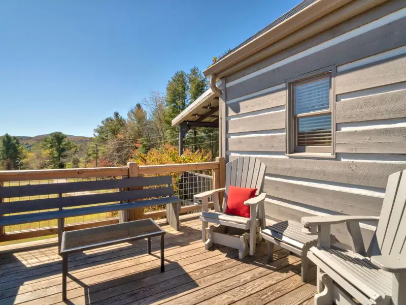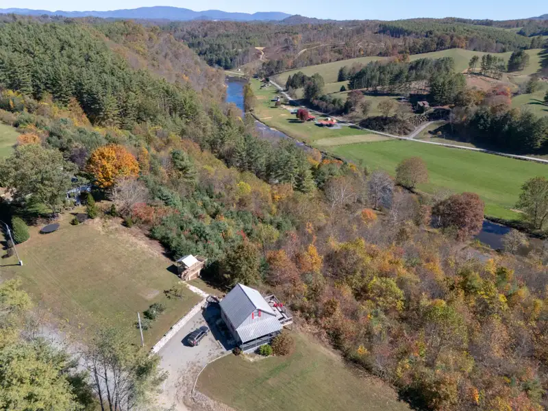 This sweet Blue Ridge Mountain cabin set on 2+ acres is ready to move in! This 2-bedroom, 1.5-bath, complete with furnishings inside and out, linens, and a fully stocked kitchen, you'll just need to pack a bag! Perched on a ridge overlooking the New River, it boasts long and short-range rolling mountain views. Enjoy sunsets and sunrises from multiple outdoor spaces, including a large deck, a front porch with a swing, and an elevated gazebo overlooking the river. Don't forget the fire pit area for toasty nights by the fire, stargazing, and making mountain memories. On the main level, the home features an open concept living room with kitchen and dining area, primary bedroom, and full bath with laundry. The second floor features two sleeping areas and a half bath. The home has been decorated with a simple, modern touch, allowing the details of the wood walls and beams to shine. The New River is just a short 1/4 mile drive away for kayaking, canoeing, and fishing. Grayson Highlands State Park is just a short drive away for a hike along the Appalachian Trail, as are many other great hiking spots in the West Jefferson/Ashe County area. The home has been a successful Airbnb, and a new owner could continue with those rentals to bring in extra income. The lot is even large enough that you could add a home should you choose. Don't miss this opportunity to own your mountain getaway! Call for more information about a private viewing of our listing W141.