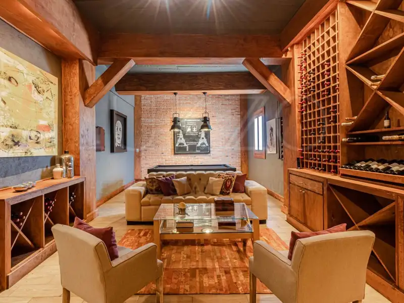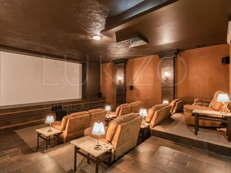 - Private movie theater with reclining seats