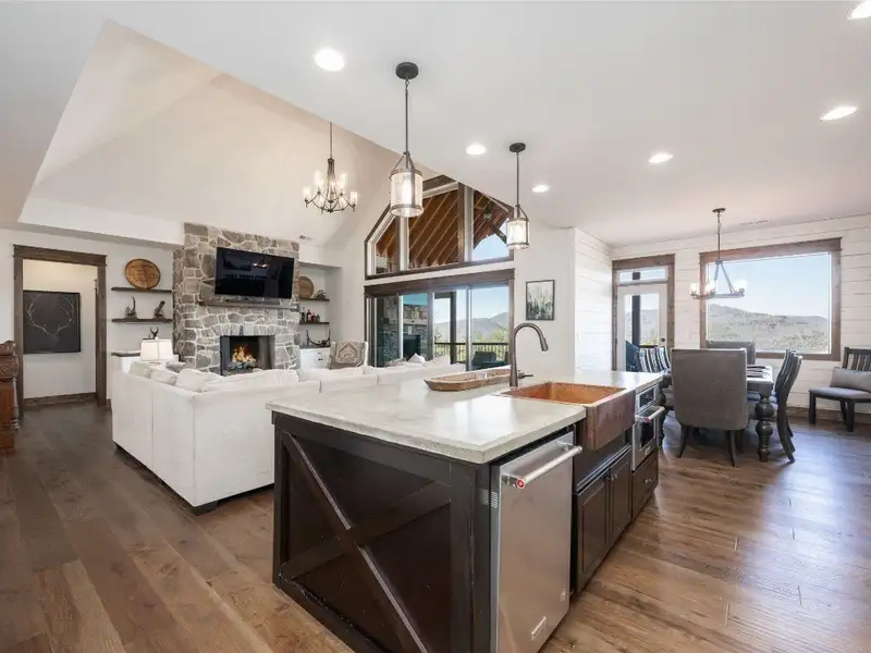Discover the perfect blend of craftsmanship, comfort, and breathtaking mountain and lake vistas in this custom-built Arts and Crafts home, nestled within the gated community of Greycliff. Just a 15-minute scenic drive from the charming town of Cashiers, this home offers the serenity of mountain living with convenient access to Lake Glenville and a community boat dock. Situated at an elevation of 4,000 feet on about 1.37 acres, delight in cool temperatures and year-round natural beauty. Offered fully furnished with few exceptions, this meticulously maintained home is truly move-in ready to enjoy this season. With historically low inventory on the plateau, now is the time to secure a dream mountain retreat in a community experiencing exciting small-town charm and growth. Thoughtfully designed with high-quality materials, this home showcases timeless architectural elements, including cedar shakes, stone columns, and a welcoming entryway. 2024 updates include fresh interior and exterior paint, newly installed hardwood floors throughout, and stunning Cristallo Quartzite countertops in the spacious kitchen. The open-concept floor plan is perfect for entertaining and relaxation. The great room features a striking stone fireplace, soaring ceilings, and expansive windows that frame mesmerizing long-range mountain views. The well-appointed kitchen provides ample storage, a large walk-in pantry, and an inviting layout for culinary creations. The main level features a luxurious primary suite with a spa-like ensuite bathroom and private deck access - an ideal spot to wake up to breathtaking mountain scenery. A second main-level bedroom with an ensuite bathroom ensures comfort and privacy for guests. The lower level offers a generous family room, media and game area, and two additional bathrooms and bedrooms, one of which includes four built-in bunk beds. Above the spacious two-car garage, a large bonus room presents endless possibilities, whether as a home office or workout space - all while showcasing incredible long-range mountain views. Designed for embracing the great outdoors, this home features expansive decks on both the main and lower levels, complete with a fireplace, grilling area, and hot tub. Greycliff is vacation rental-friendly, offering excellent investment potential while maintaining a peaceful retreat. Ready to leave behind the heat and hustle of city life? This stunning mountain home provides the perfect sanctuary.
