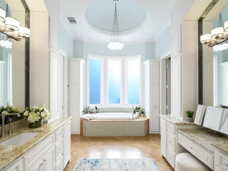 - Downstairs primary suite with spa bath