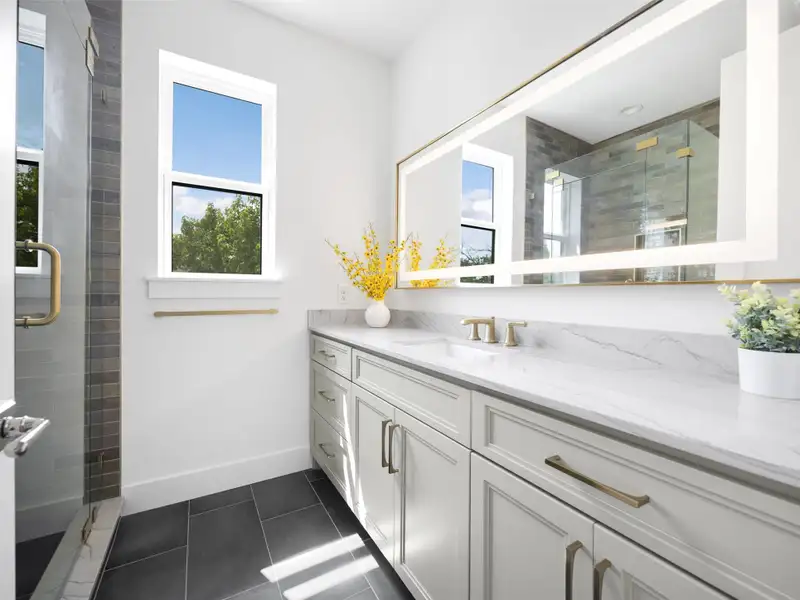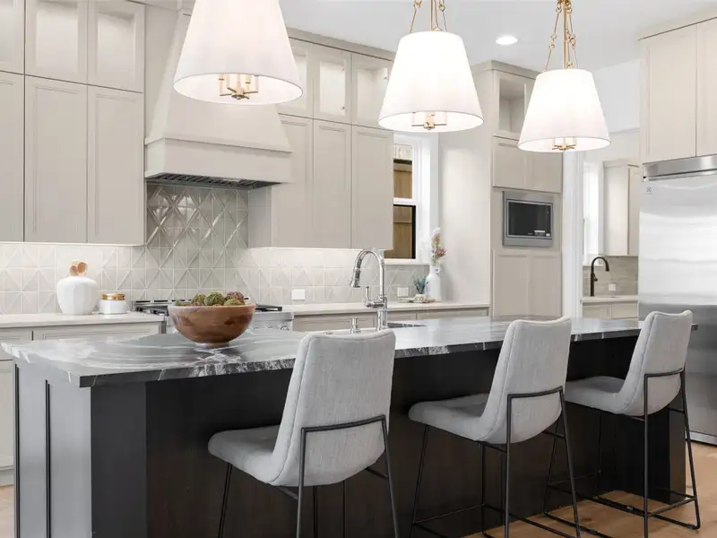 - Kitchen with quartz and marble surfaces