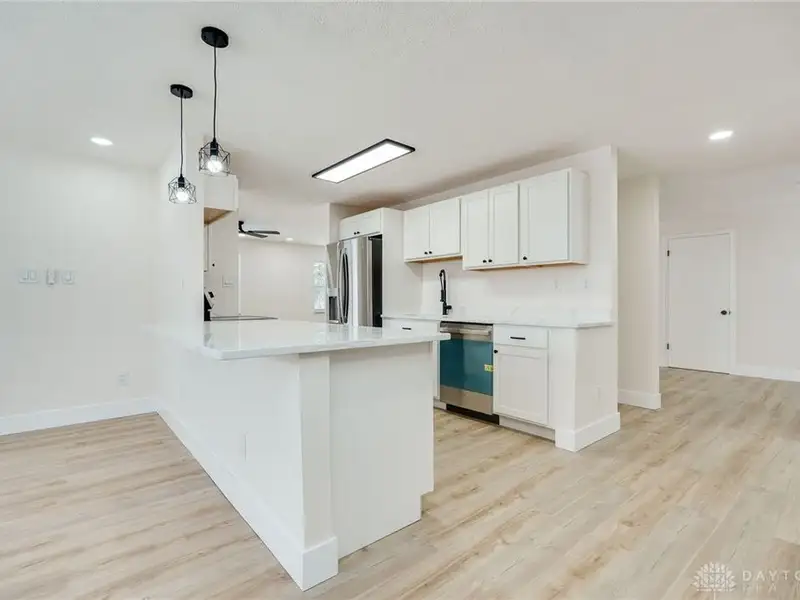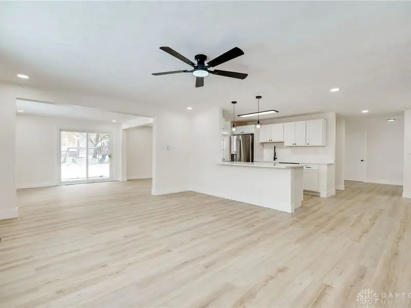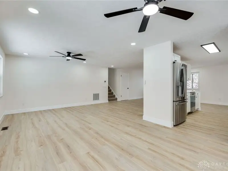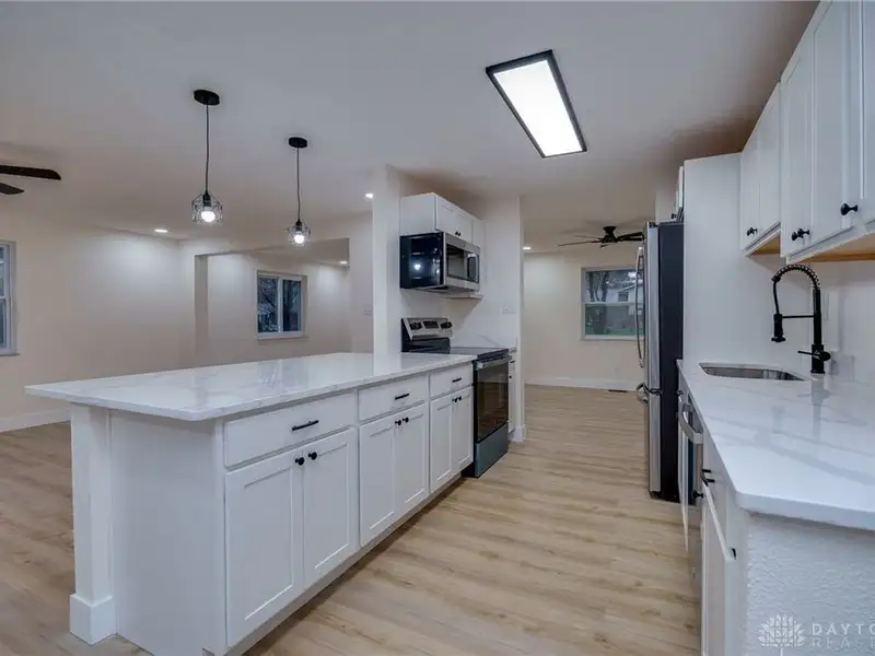 - Open-concept main floor with new kitchen