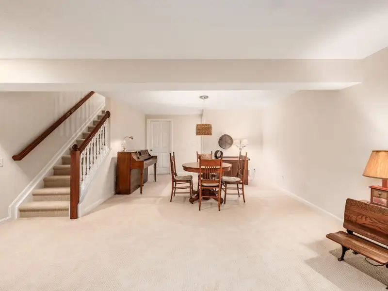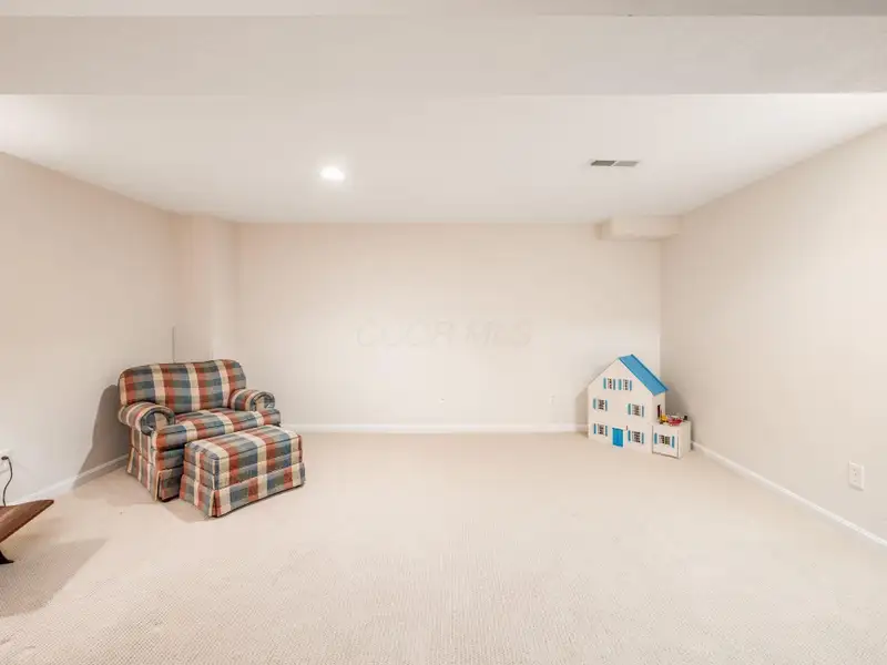 - Large finished lower level rec room