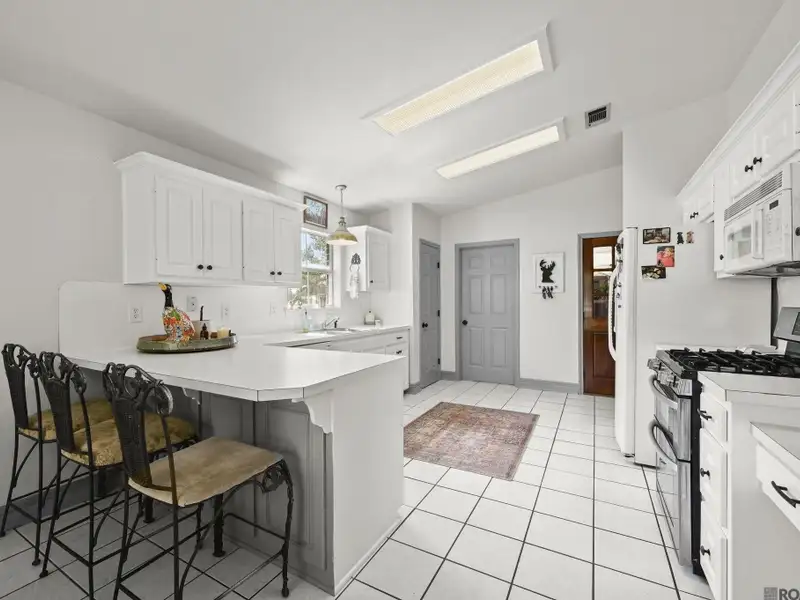 - Open kitchen with gas range and breakfast bar