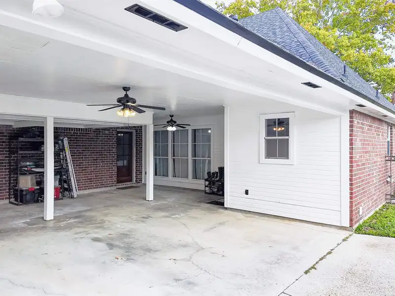 - Two-car carport with extended parking pad