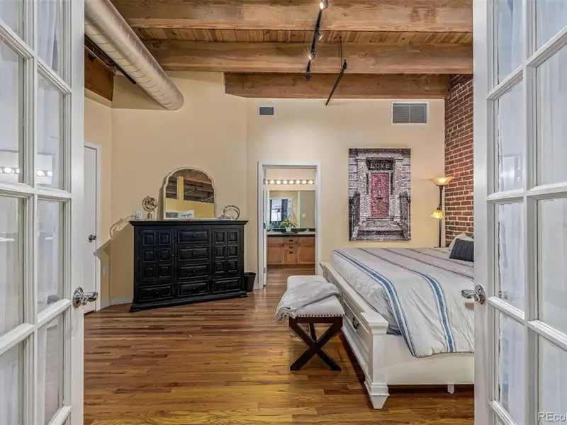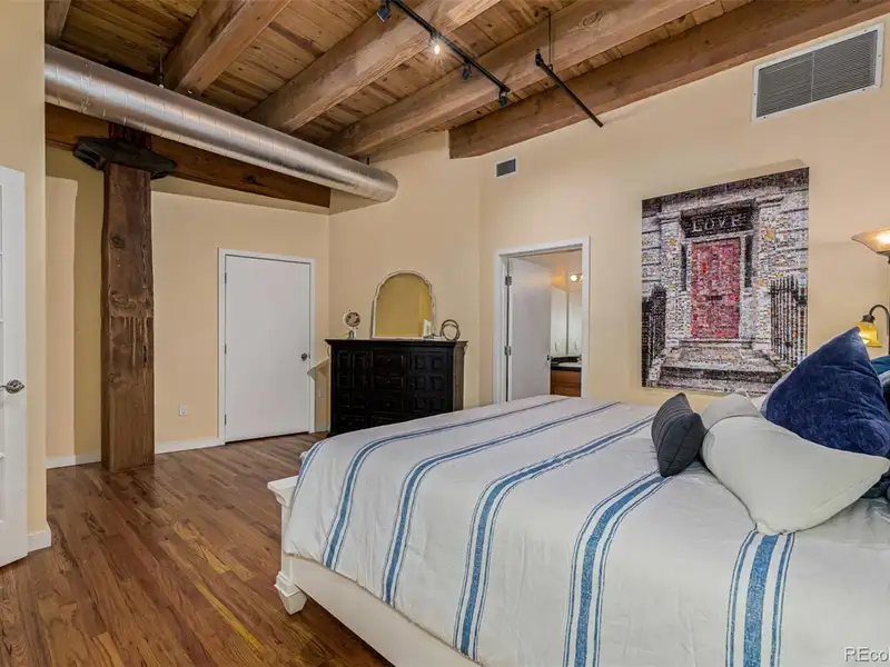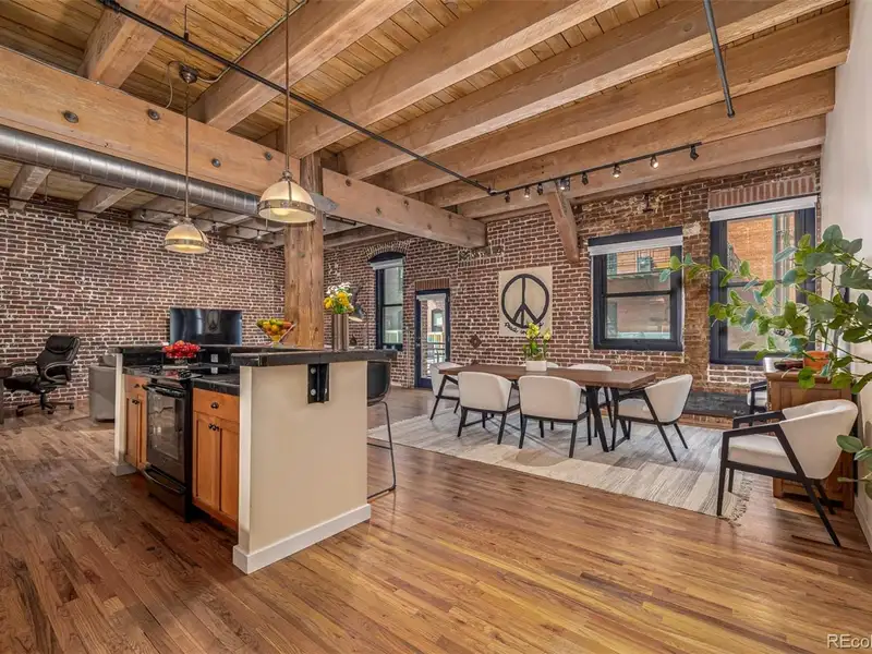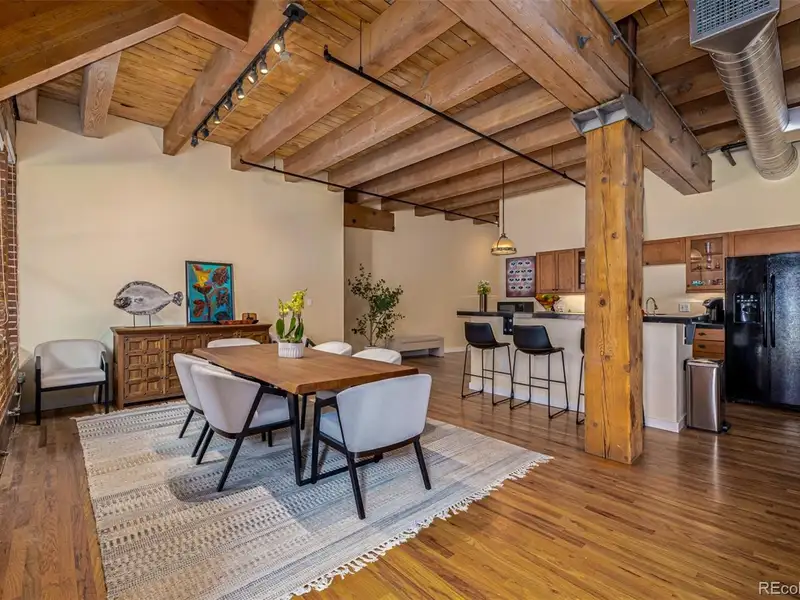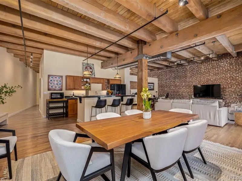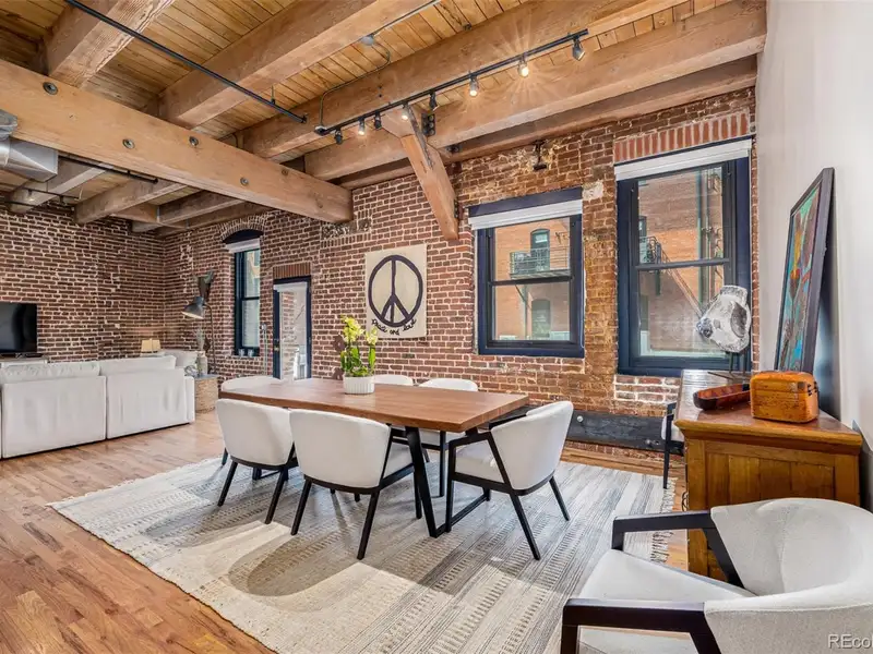 - Soaring ceilings with wood beams