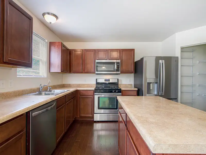 - Spacious kitchen with island and pantry
