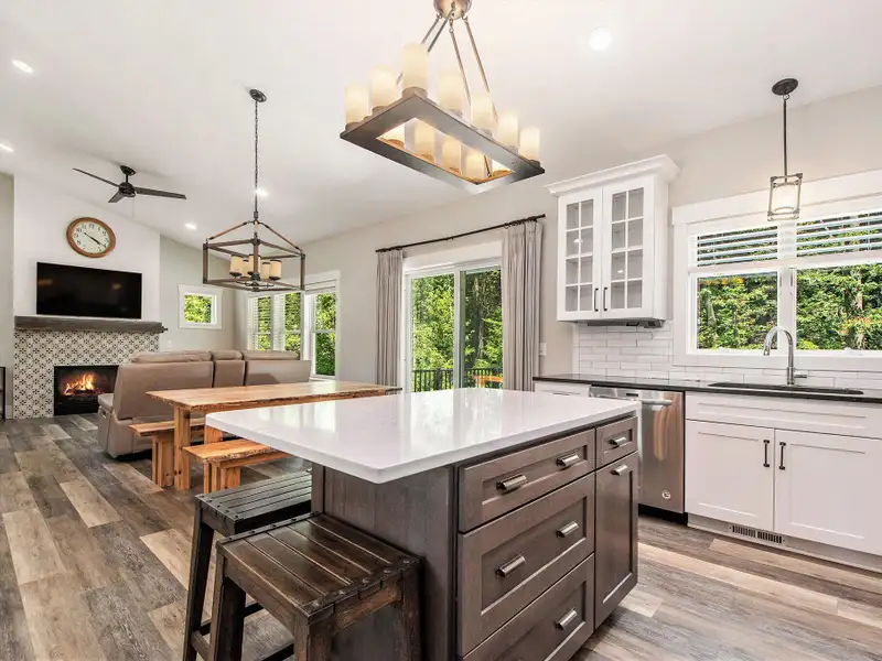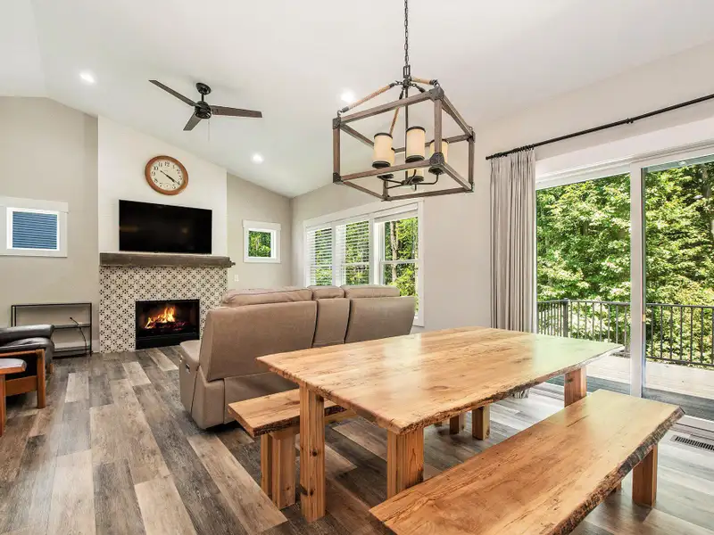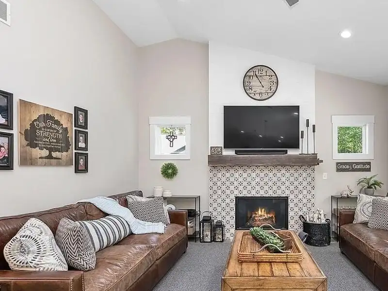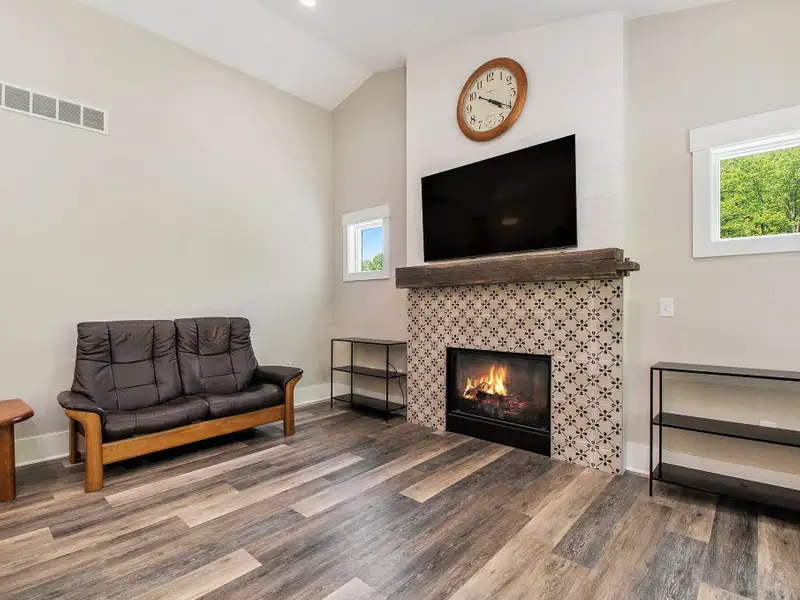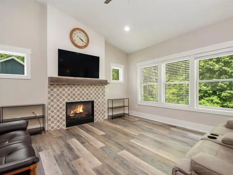 - Fireplace in open living area