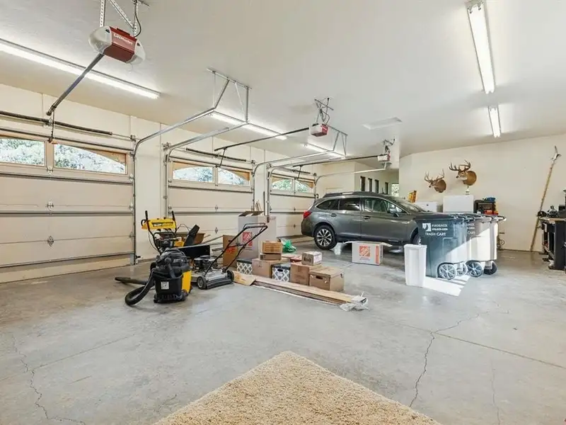 - Large garage fitting three vehicles plus storage and workbench
