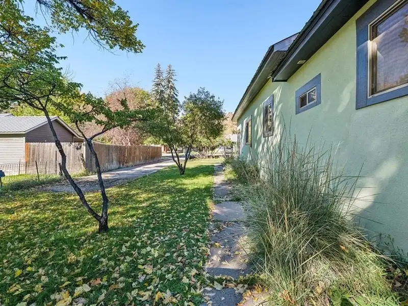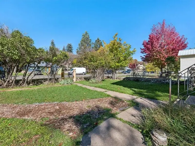 - Fenced backyard with lawn and mature trees