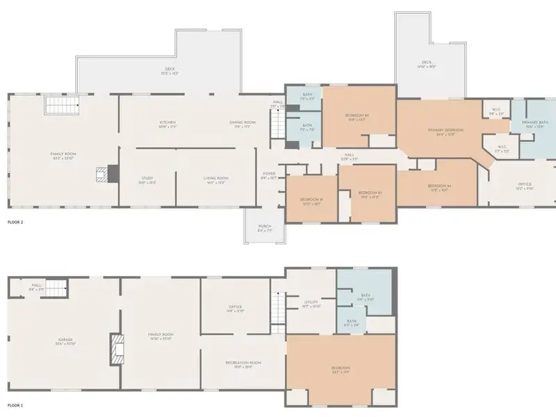 - Two primary suites with home offices