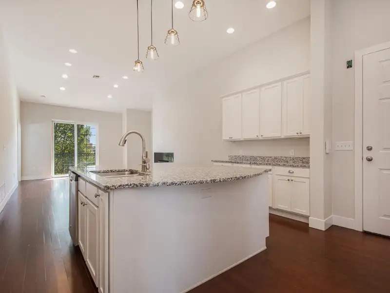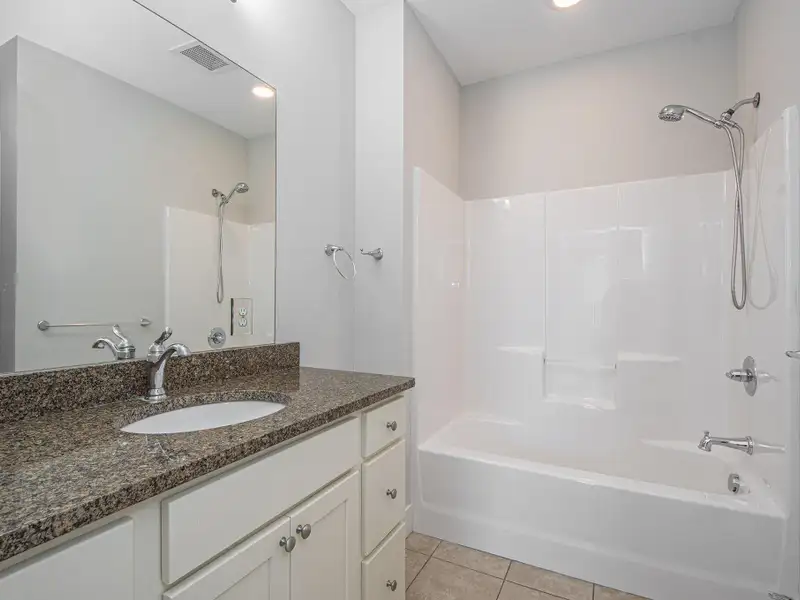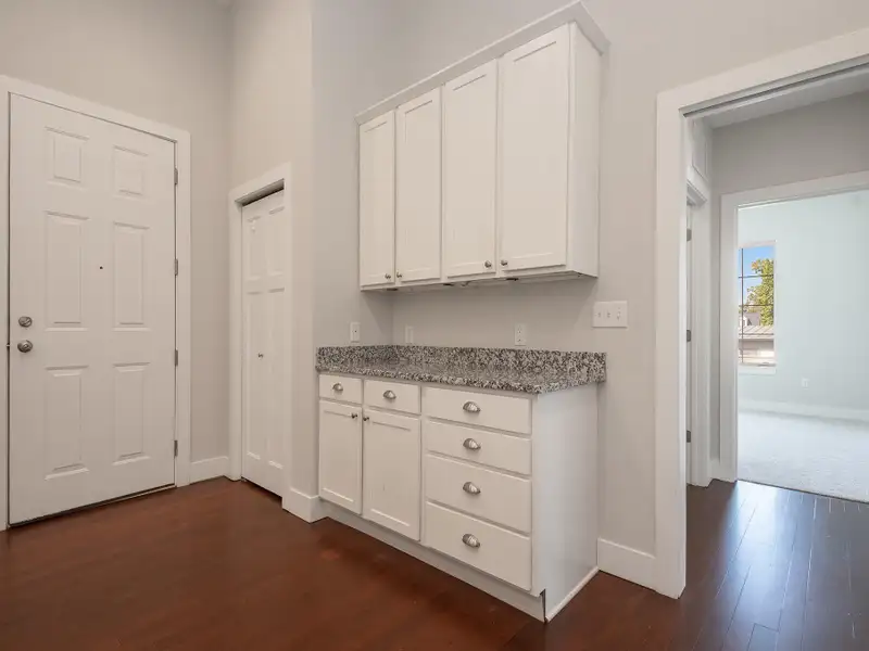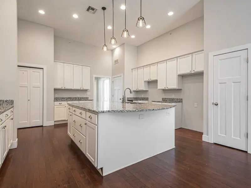 - Granite countertops and white cabinetry