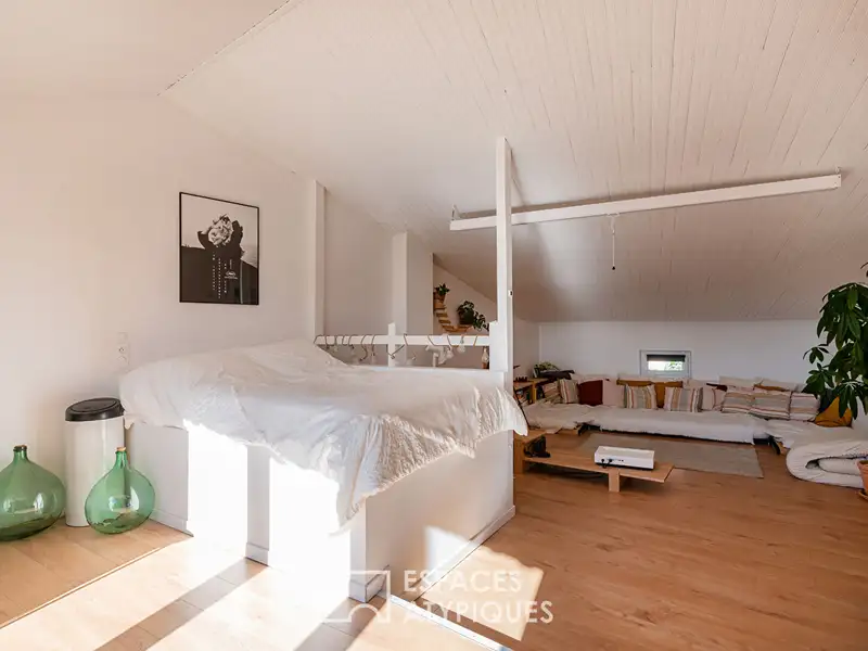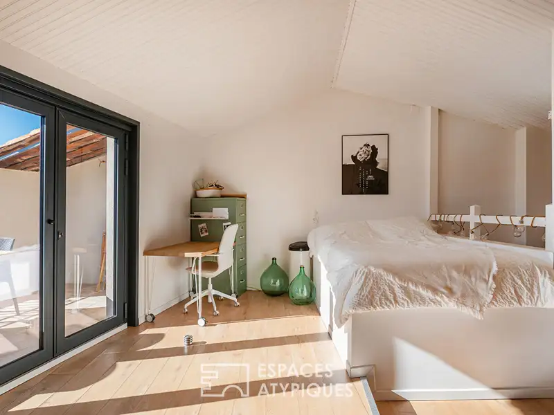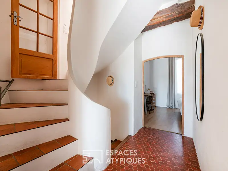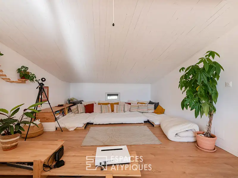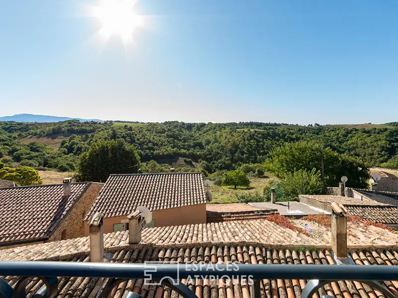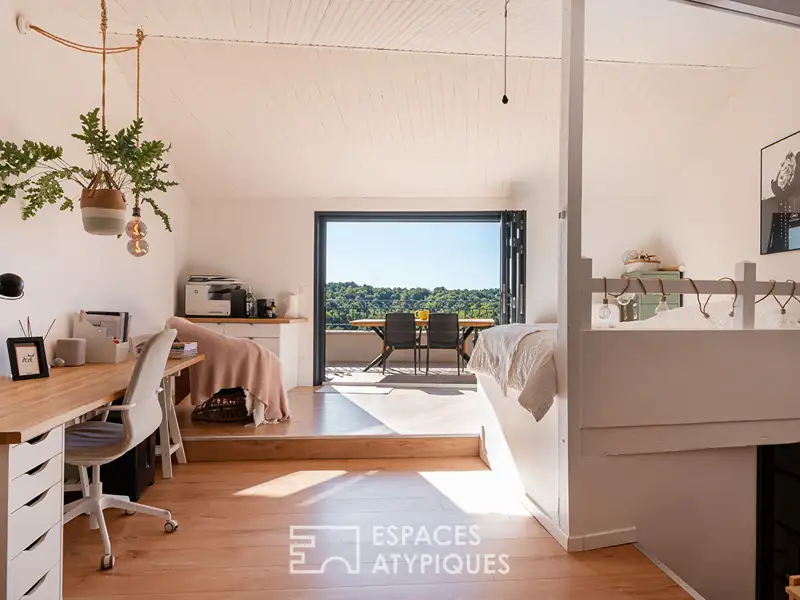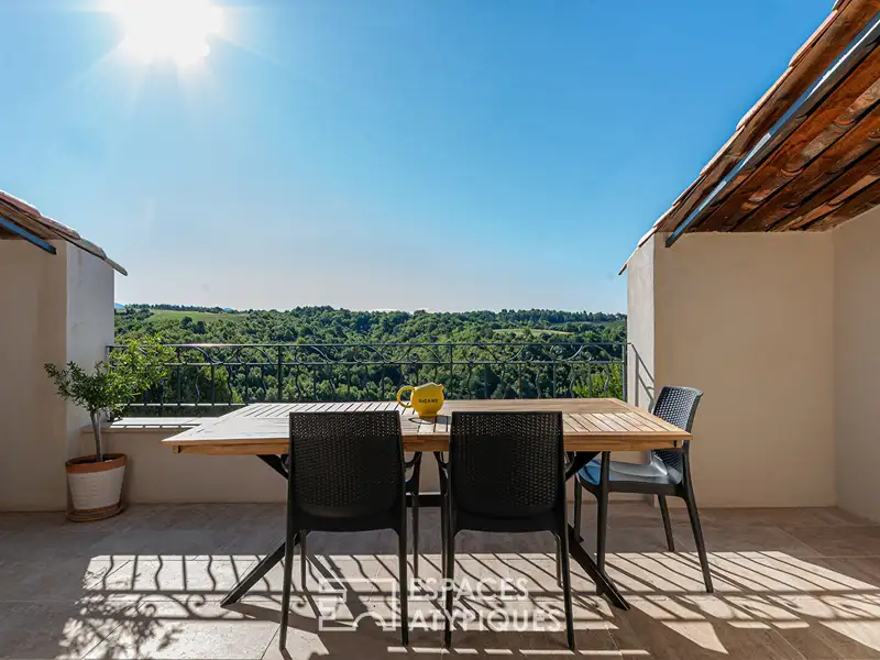 On the top floor, the family room, bathed in light, opens onto a sunny rooftop terrace offering a breathtaking panoramic view of the surrounding hills.