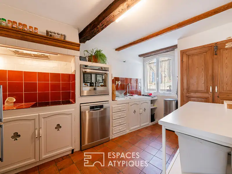 On the ground floor, a beautiful fitted kitchen invites the pleasures of conviviality, while a comfortable living room comes alive around a superb fireplace.