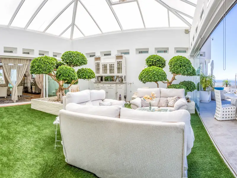 The mansion boasts three main living rooms, each with an exclusive design tailored to different moments of your day. Outside, you will enjoy an unparalleled experience: perfectly maintained Mediterranean gardens, a chill-out corner with a waterfall, barbecue area, tropical pathways, an olive garden, and even a space prepared for a helipad.