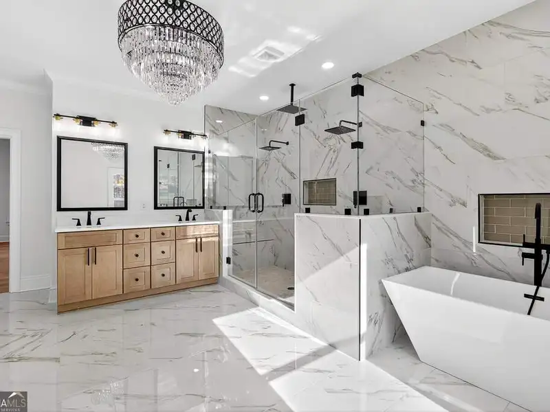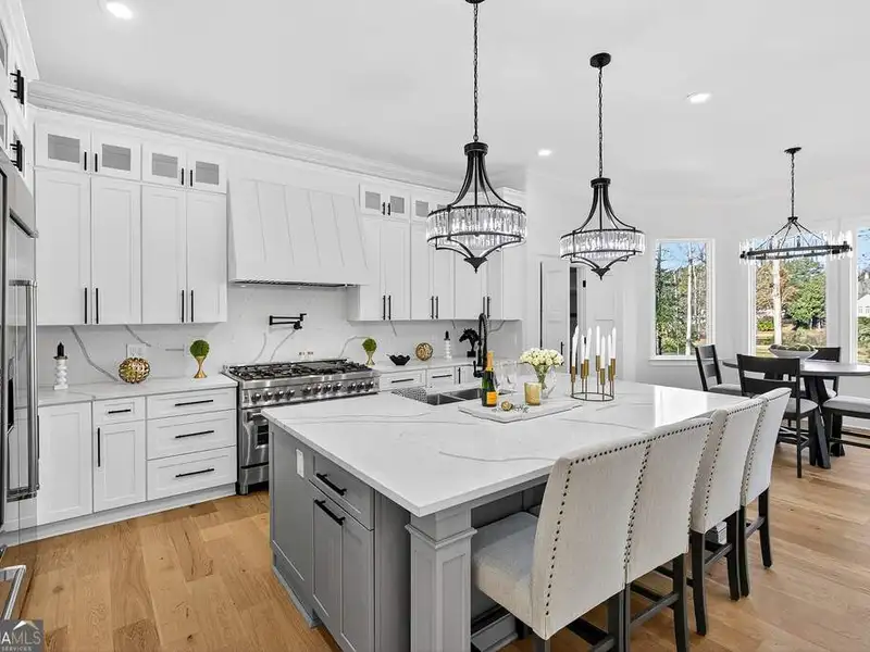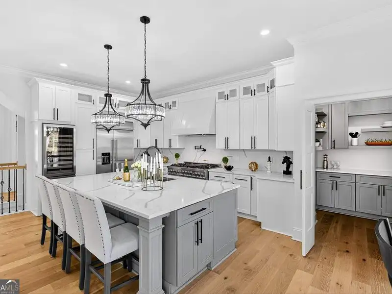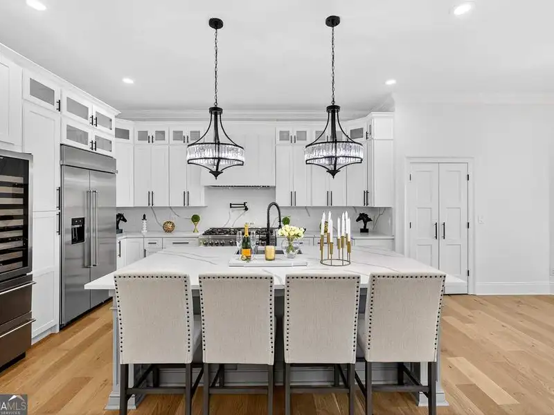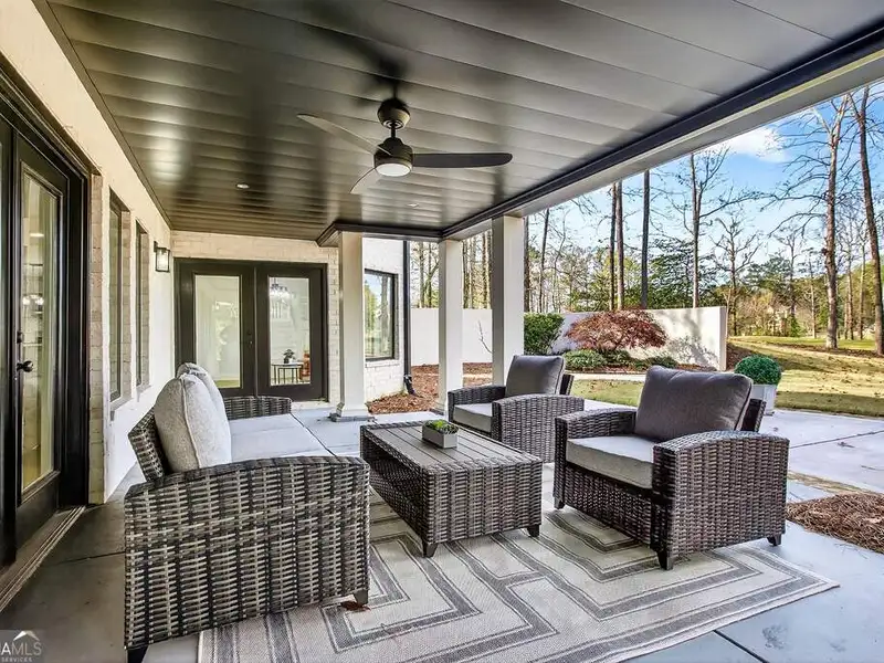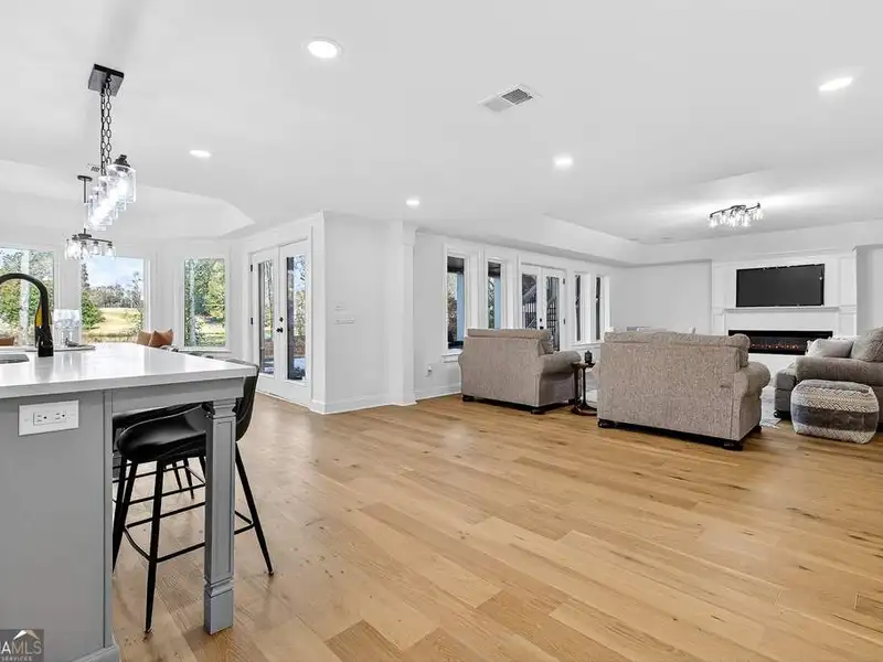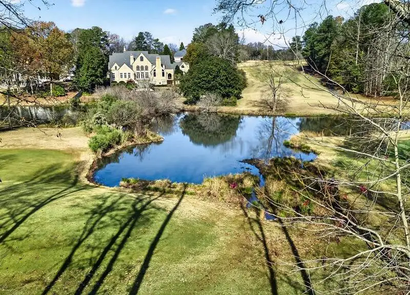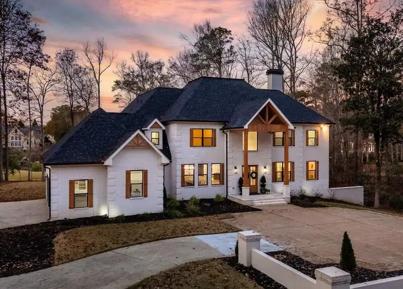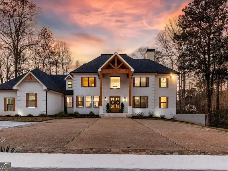 Welcome to a truly magnificent, all-brick, luxury estate in the prestigious, gated Whitewater Creek community-the ONLY gated golf community on the south side of Atlanta. It is located in the highly sought-after Starrs Mill School District and connected to Peachtree City's 100 Miles of Golf Cart Paths. This extraordinary five-bedroom, six and-a-half-bath home has been completely reimagined and rebuilt from top to bottom with every single feature brand new. From the massive window walls to the flooring, lighting, cabinetry, and custom millwork. No detail was untouched, and no expense was spared. The moment you step inside, you are met with spectacular panoramic views of both the golf course and the lake showcased through the homes brand-new, oversized windows that flood every level with natural light. Gorgeous new staircase and an additional back staircase. The massive open Great Room captures these views in breathtaking fashion, while the formal dining room easily seats 12+ guests, perfect for elevated entertaining and unforgettable gatherings. This estate offers two stunning primary suites- one on the main level and one on the second floor-each featuring its own fireplace, sitting area, and a spa-inspired luxury bathroom with custom tilework and high-end finishes that rival a five-star resort. The secondary bedrooms are exceptionally generous in scale, each offering the kind of space rarely found in today's homes-true private retreats that can easily accommodate king-size furniture. The home also includes two dedicated offices. A main-level executive office with built in bookcase and a terrace-level private office-ideal for working from home, creative pursuits, peaceful study or a bedroom. A culinary enthusiast's dream, the home features two incredible kitchens: a beautifully designed main kitchen with top appliances, 48" gas stove, pot filler, drawer microwave, 48" Kitchen Aid refrigerator, large wine cooler with drawers, double drawer dishwasher, quartz countertops and back splash. This kitchen includes custom cabinetry, expansive prep areas, and flawless design-perfect for hosting multi-generational living AD or catering large events. The secondary bedrooms, exceptionally generous in scale, and two laundry rooms- one on main and one upstairs. The terrace level is an entertainer's haven, offering its own Great Room-style living area, movie theater, wine room, bedroom, game room, fireplace, and walkout access-perfect for guests, game-day excitement, recreation, or cozy evenings at home. With its own full kitchen with absolutely stunning finishes and appliances with beverage refrigerator, nothing was overlooked top tier and ADU. Outdoor living is unmatched with three expansive decks, including a fully covered deck with a solid ceiling, allowing year-round enjoyment without weather passing through. For parking and storage, the property features four garages. They have three garages on the main level with EV charger, plus an additional lower-level garage perfect for a golf cart, boat, or workshop. An impressive motor court enhances the home's arrival experience, offering abundant guest parking and a grand drive-up statement that sets the tone for the luxury within. Perfectly positioned for an exceptional lifestyle, the home is just 30 minutes to Hartsfield-Jackson Atlanta International Airport, 15 minutes to Piedmont Fayette Hospital, 15 minutes to Trilith Studios, and 15 minutes to the new U.S. Ntl. Soccer Training Center. Every inch of this residence reflects luxury reimagined, rebuilt, and refined. With extraordinary brand-new features, breathtaking views, and craftsmanship at the highest level, this all-brick Whitewater Creek Estate stands in a class of its own.