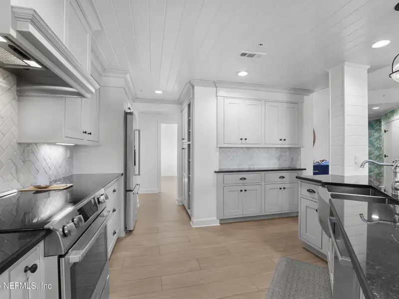 - Shiplap ceilings and tile plank floors