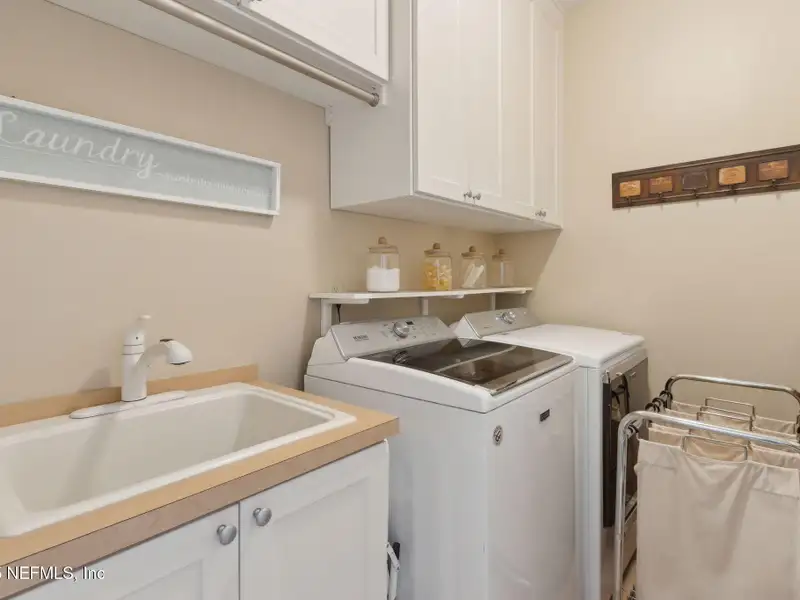 - Three-car garage with storage cabinets