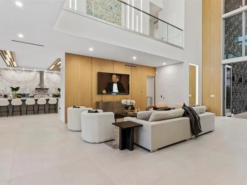 - Dramatic two-story foyer with glass walls