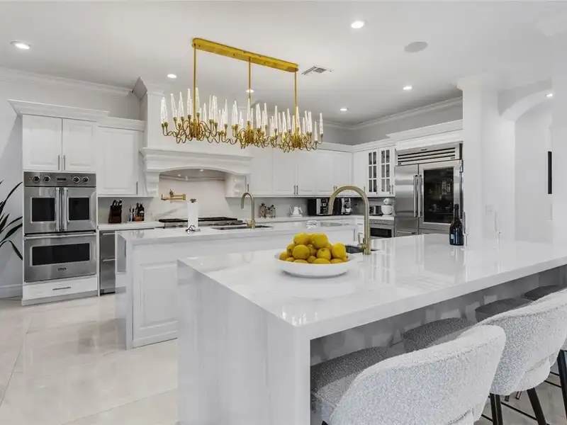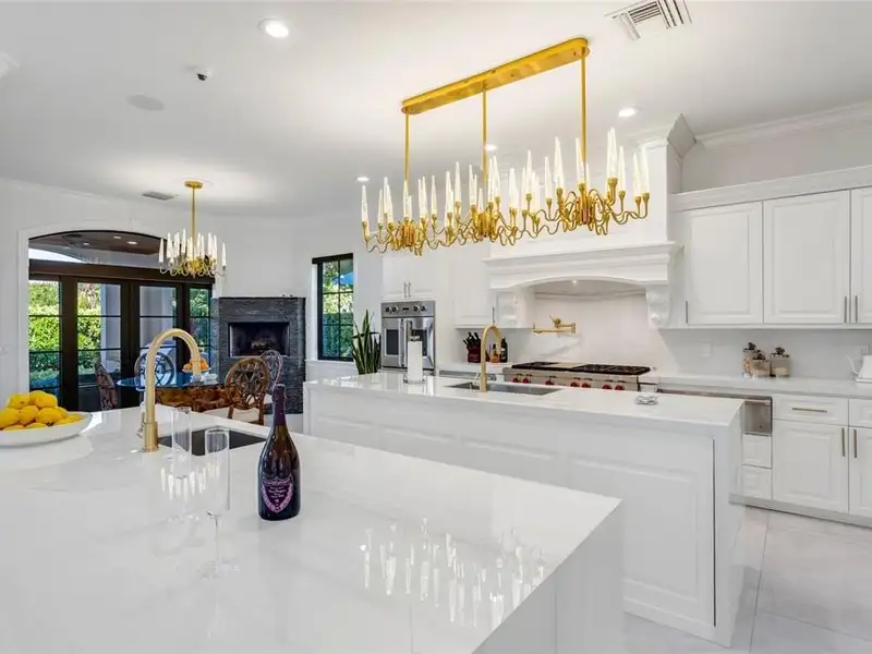 - Chef’s gourmet double island kitchen