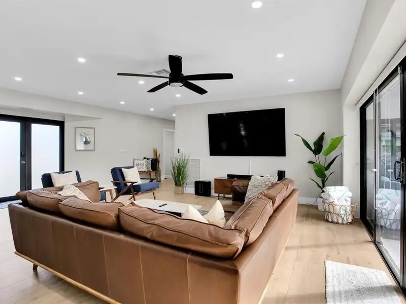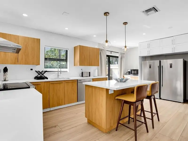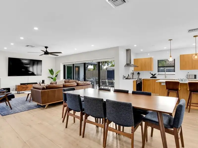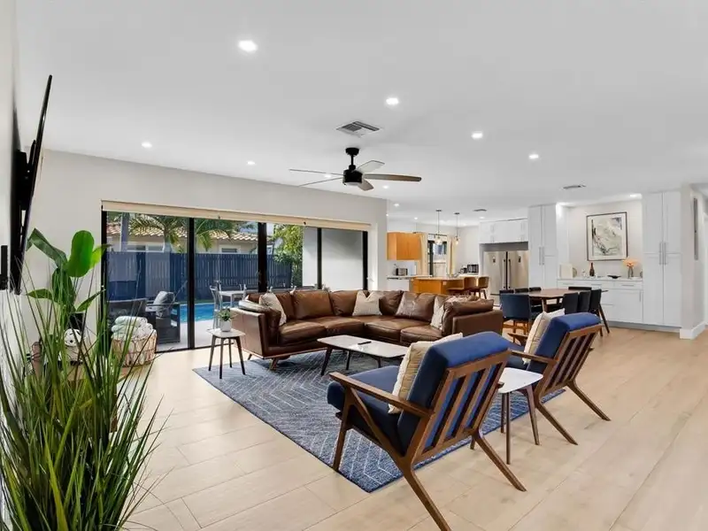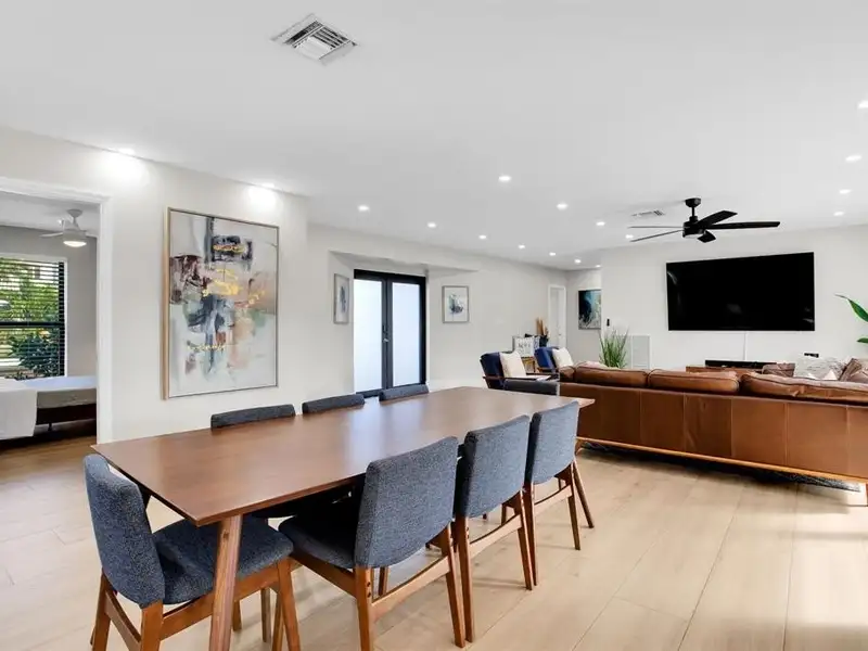 - Open kitchen, dining, and living areas