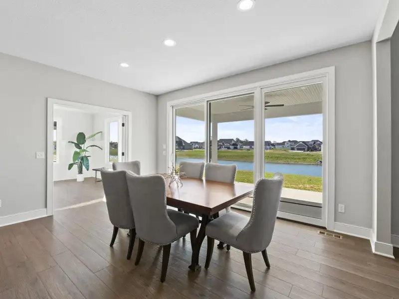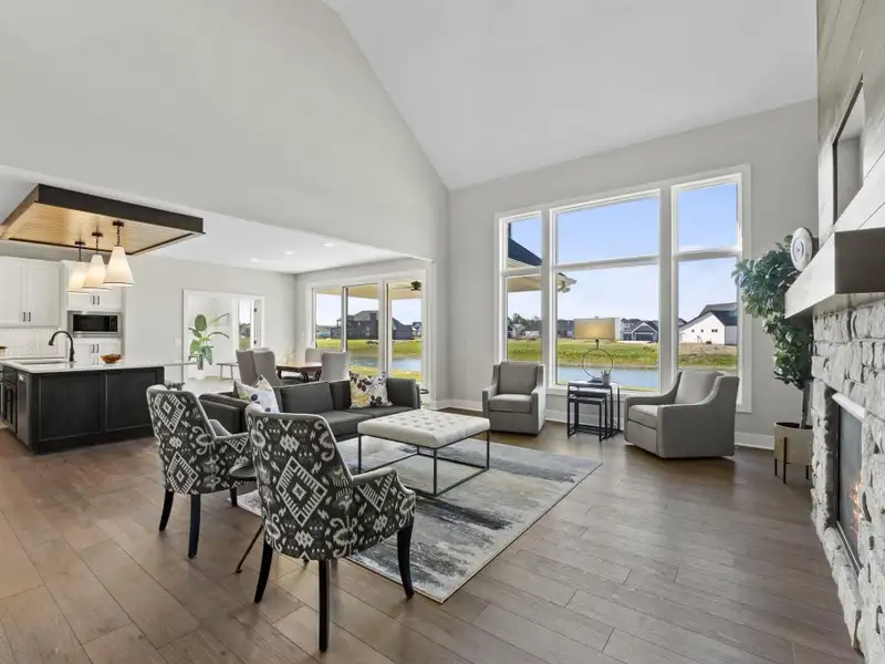 New Construction, completed and ready to move in! Welcome to Bob Buescher Homes' latest custom-designed two-story home in Mercato. This stunning residence is situated on a picturesque waterfront lot and features an elegant exterior with beautiful stone accents, board and batten siding, and shake details, creating a captivating first impression. Spanning 3,426 square feet, the home includes four bedrooms, 3.5 bathrooms, and a lovely sunroom. It also boasts an oversized three-car garage, totaling 1,061 square feet, providing ample space for vehicles and storage. Upon entering, you will find an open-concept living area highlighted by a vaulted two-story ceiling that fills the space with natural light, creating an airy and inviting atmosphere. This expansive area seamlessly connects to the gourmet kitchen and dining space, making it ideal for gatherings and entertaining. The kitchen features custom-designed cabinets by Zehr, a spacious 5x8 island, and a large 10-foot deep walk-in pantry to meet all your storage needs. Adjacent to the dining area is a versatile sunroom, suitable for use as an office or a peaceful retreat for reading and relaxation. The primary bedroom, conveniently located on the main level, serves as a sanctuary of comfort and luxury. It offers generous dimensions, an en-suite bathroom with a double vanity, a tile walk-in shower, a water closet, and an expansive walk-in closet. The laundry room is also located near the primary bedroom, enhancing the home's functional design. On the second level, you will find three additional bedrooms, a Jack and Jill bathroom, and another full bathroom, providing ample space for family and guests. A significant bonus space is thoughtfully positioned on the opposite side of the home from the bedrooms, ensuring privacy and flexibility for various uses. Direct attic access further enhances convenience and storage capabilities. The outdoor living space is equally impressive, featuring a large covered porch offering stunning views and an idyllic setting for relaxation. This remarkable Bob Buescher home is more than just a house; it represents a lifestyle waiting for you. With its thoughtful design, premium finishes, and unparalleled location, it offers a sanctuary you will cherish. Mercato is conveniently located near restaurants, shopping, I-69, and Lutheran Hospital.