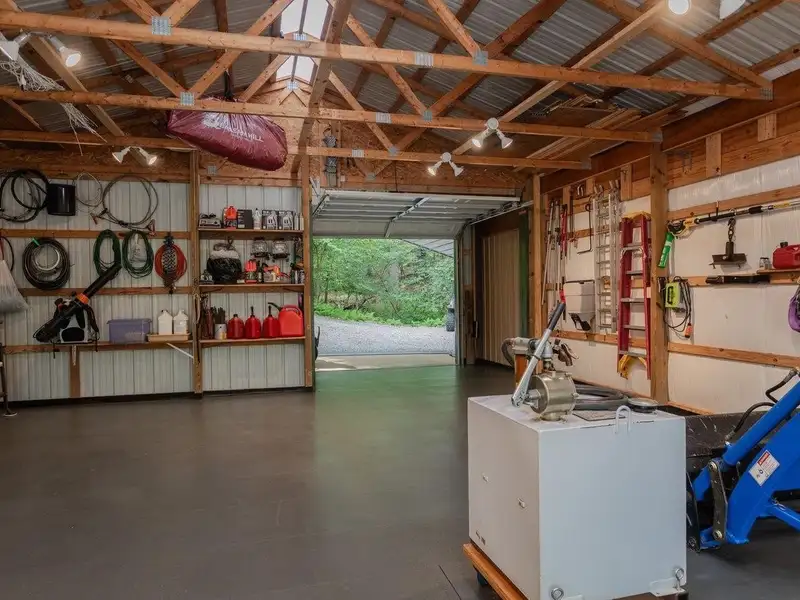 - Attached two-car garage plus large detached workshop