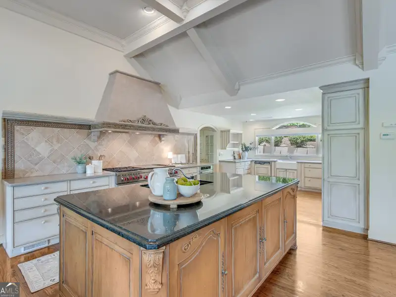 - Chef’s kitchen with large island and gas range
