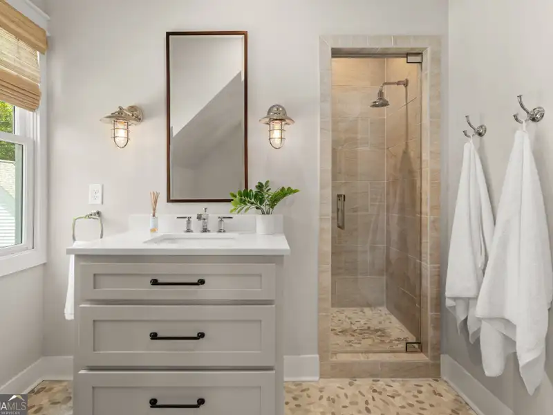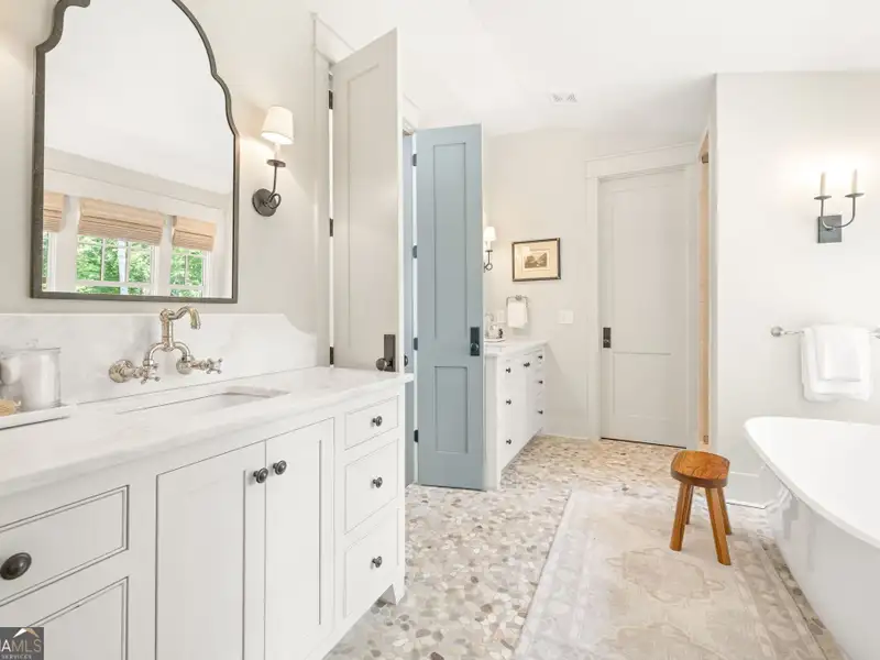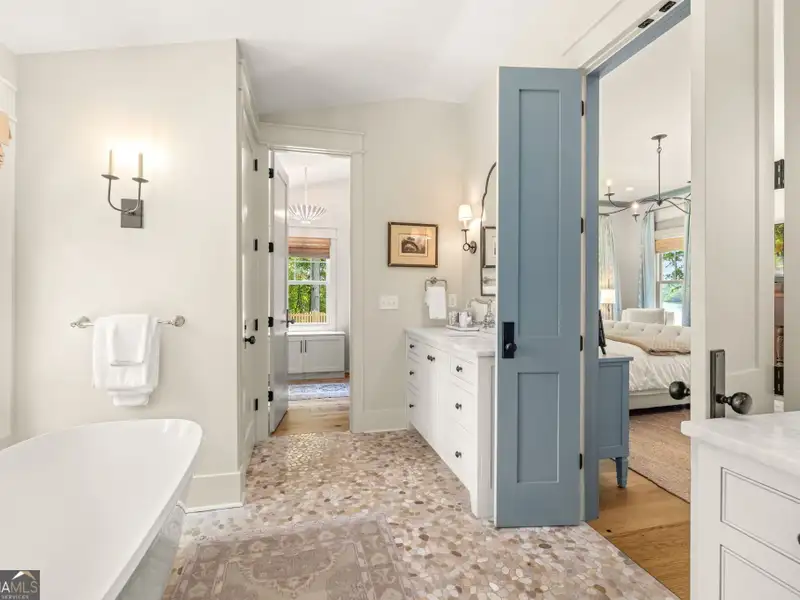 - Main-level primary suite with spa bath