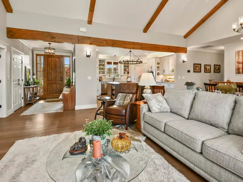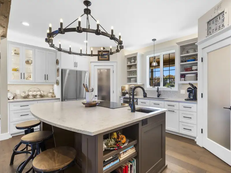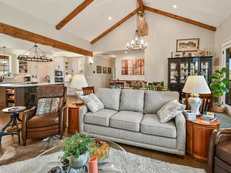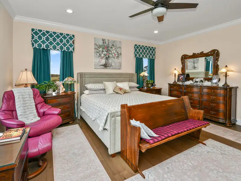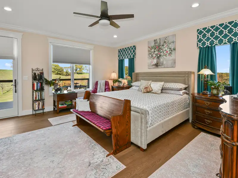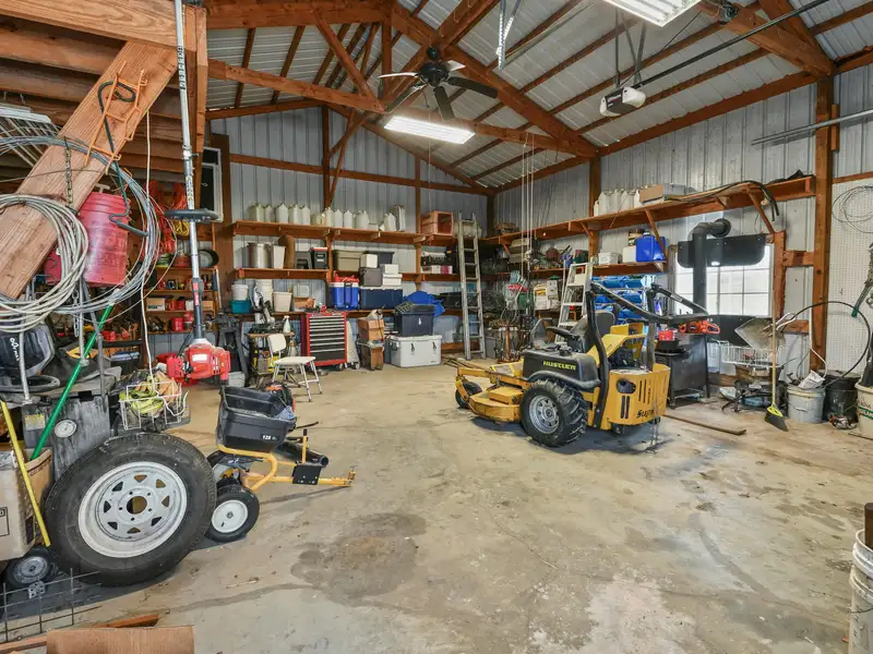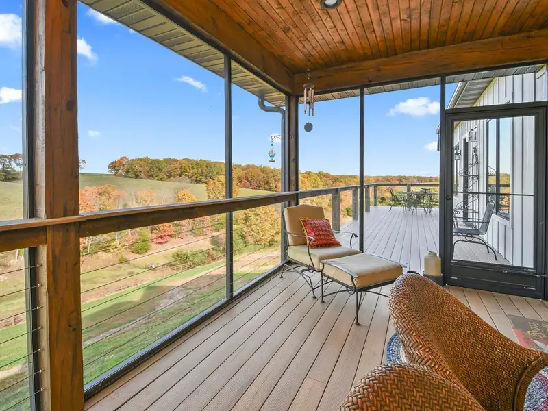 GREEN ACRES IS THE PLACE TO BE! Farm livin really is the life for you ---- only this isn't Hooterville! Enjoy the perfect blend of country privacy and city convenience with all paved roads leading right to your door. As you meander down the asphalt drive, take in the beauty of 33 m/l rolling acres, dotted with two tranquil ponds and enclosed by welded steel pipe fencing -- ideal for cattle, horses, a hobby farm or simply soaking in the serenity. A metal hay barn (84 X 60) with tack/storage room) and a metal shop (30 X 40) with concrete floors, electricity and heat. AND THEN WE FIND THE SHOWSTOPPING HOME that's just three years young and offering over 3,700 square feet of luxury living. Exterior combines LP Smart Side Diamond Kote and brick for a stunning effect. Step inside through the welcoming beamed entry into a foyer with stunning countryside views. The living room features a vaulted beamed ceiling, floor-to-ceiling stone fireplace (vented propane) and expansive windows that fill the space with light and scenery. The open floor plan flows effortlessly into a chef's dream kitchen, highlighted by a 5' X 7' matte quartz island with seating, prep sink, five-burner induction cooktop and abundant workspace. Elegant cabinetry combines open shelving, glass fronts and solid doors, all illuminated by over, under and interior cabinet lighting -- perfect for showcasing your treasures. Two walk-in pantries flank the sink area (one currently being used as a small office). Step out to the large screened deck with its tongue-and-groove ceiling and enjoy peaceful mornings or golden sunsets over the rolling pastures. The primary suite is a true retreat with open deck access. French door walk-in closet, curbless tile shower, freestanding soaking tub, large linen closet and spacious raised double vanity. Down the hall, you'll discover two additional large bedrooms, a 3/4 bath, laundry and mud room, plus a flex space currently used as a sewing center. The oversized, zero-entry, three-car garage wired for EV charger is a dream. Most interior doorways are 36 wide. New roof and gutters installed in 2025 due to hail damage. Making your way down the stately stairway to the lower level, you'll be met by the generously sized family room with another floor-to-ceiling brick and stone vented propane fireplace. Two additional bedrooms, a full bath and huge mechanical/storage area complete the picture. All this tranquility, yet just 12 minutes to shopping, dining, grocery and medical care, and only 30 minutes to Branson. Come see where luxury meets laid-back country living -- YOUR Green Acres dream awaits at 74 Hunters Drive. Need More? There is an 12 X 30 boat slip with lift available for additional. Beautiful concrete dock and in one of the best crappie fishing holes on Table Rock.