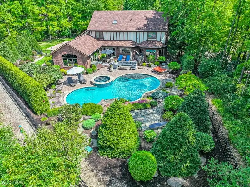 - Backyard with custom pool, hot tub, outdoor kitchen