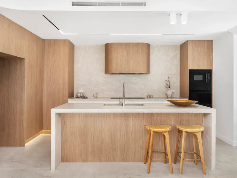 - Stone kitchen benchtops with Smeg appliances