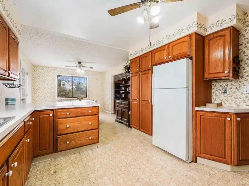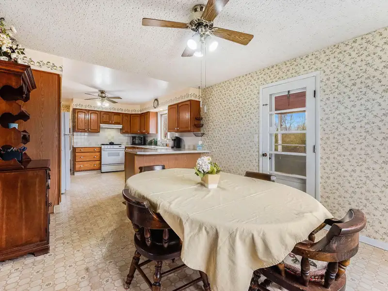 - Large kitchen and dining area