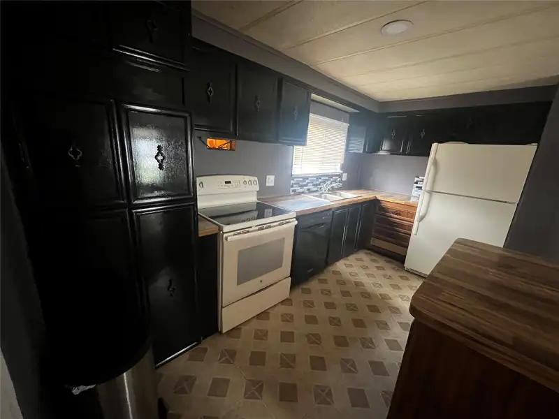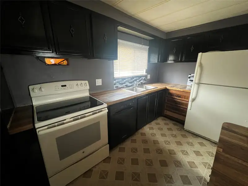 - Kitchen with island and dining area