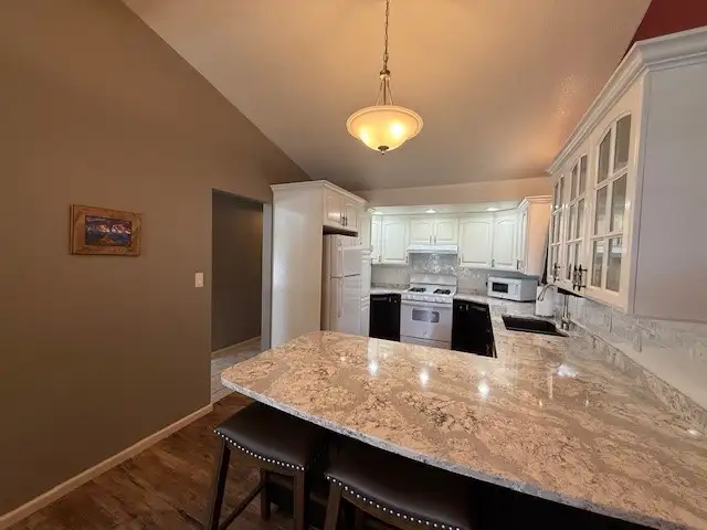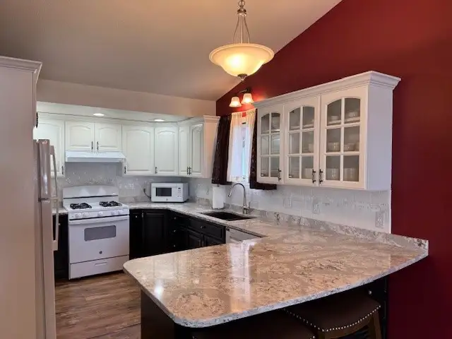 - Hard countertops in kitchen