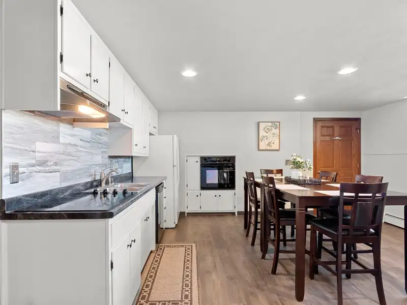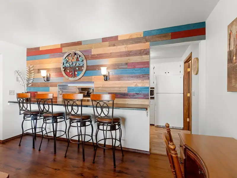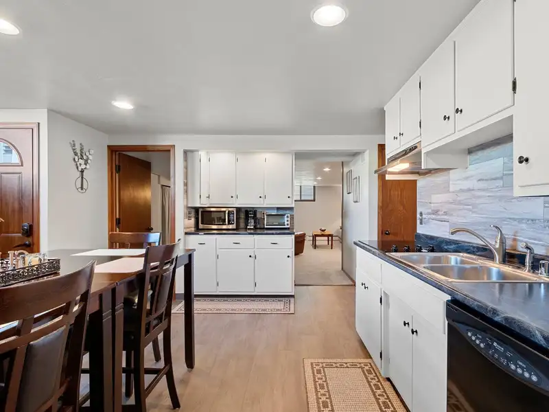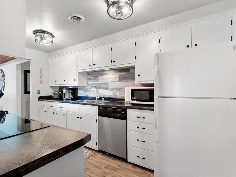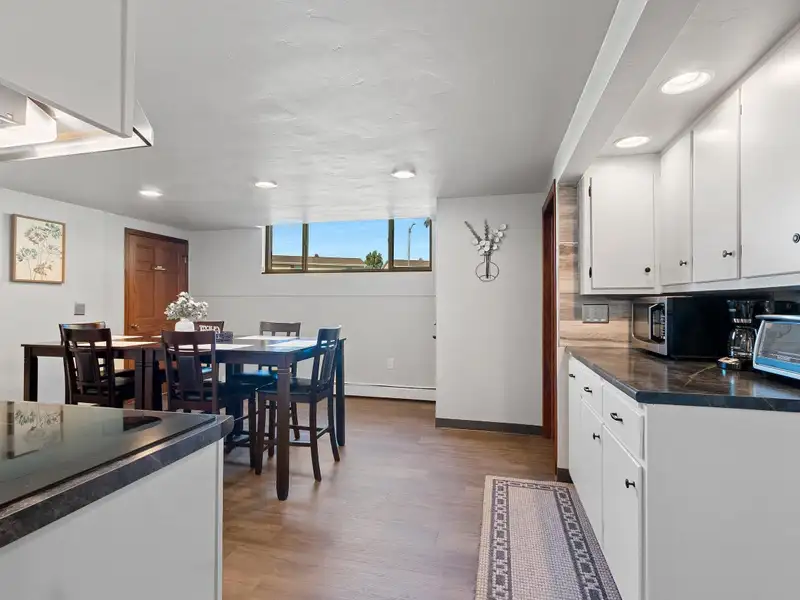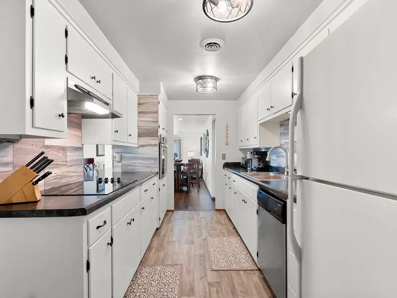 - Spacious galley kitchen with breakfast bar