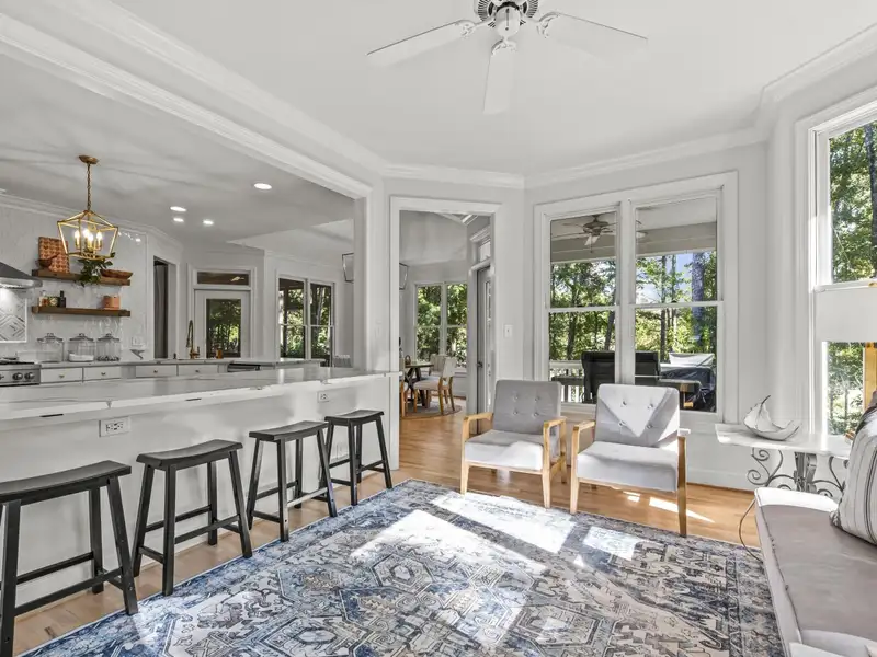 BEAUTIFULLY UPDATED HOME WITH TIMELESS CHARM AND SERENE GOLF SETTING ON THE 5TH HOLE OF THE PRESERVE AT REYNOLDS LAKE OCONEE. Light filled and completely refreshed, this home blends classic character with effortless livability. From the welcoming front porch, step inside to a bright, open layout that feels both comfortable and refined. A versatile sitting area, ideal for a dining space, flows into the great room anchored by custom built-ins and a beautifully detailed fireplace with shiplap and marble accents. French doors extend the living space to a new screened porch overlooking the 5th hole of The Preserve, an inviting outdoor area large enough for dining and a cozy seating arrangement. A separate grilling porch offers additional space for entertaining. The all new kitchen is a showpiece, designed for both daily living and entertaining, with quartz countertops, premium appliances, and abundant cabinetry. A light filled breakfast nook and adjoining keeping room create the perfect flow for gatherings. The main level has been completely transformed with new flooring, an updated primary suite, and renovated guest baths. The spacious primary suite offers a spa like ensuite with a custom vanity, soaking tub, walk-in shower, and generous closet. Two additional bedrooms share a beautifully redesigned Jack and Jill bath, offering comfortable single level living. Downstairs, the terrace level offers a large entertainment space with a fireplace, new flooring, and endless potential. A sizable storage area could easily be finished to accommodate a golf simulator or additional living space. The home also includes a two car garage and is ideally located near National Tavern, 88 Kitchen, and the Linger Longer gate, with easy access to miles of scenic walking trails. From your front door, the community walking trail connects you to Linger Longer Park, the beach area, and the nearby marina—where you can rent or store a boat or take the shuttle to Great Waters. Bright, refined, and thoughtfully updated, this home is ready to enjoy! Membership available.