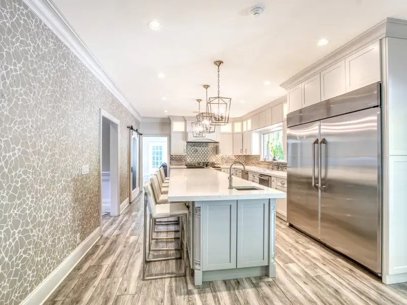 - Gourmet kitchen with 16-foot quartz island