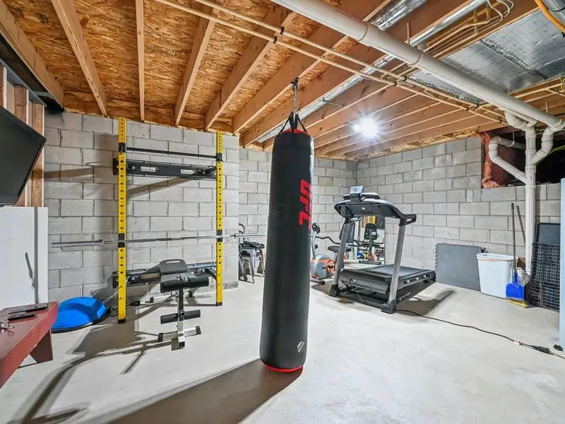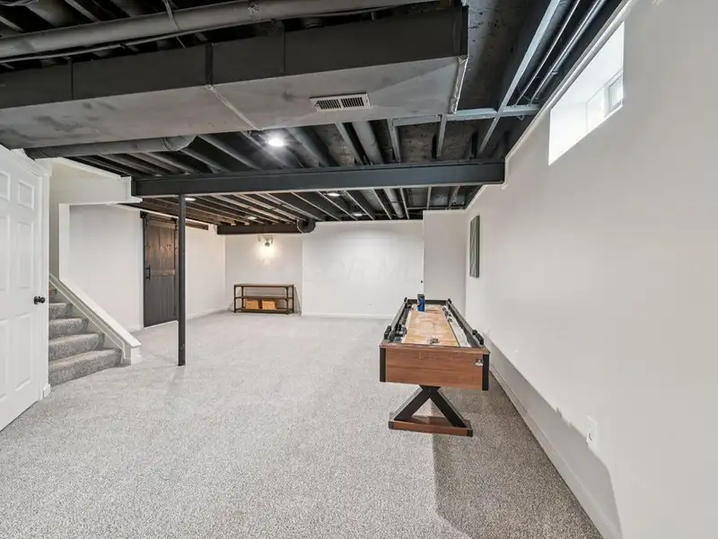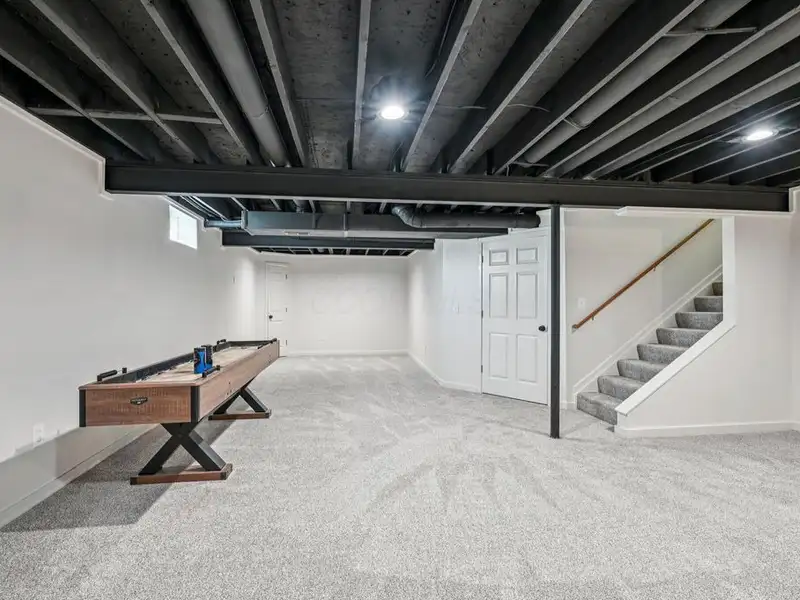 - Partially finished basement with storage