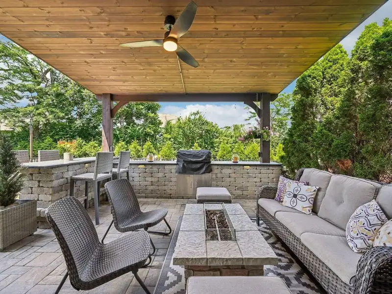 - Covered patio with built-in gas grill