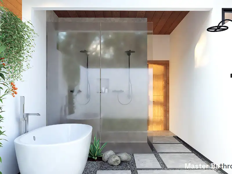 Step inside and discover a thoughtfully crafted floor plan boasting five spacious bedrooms, each with its own ensuite bathroom featuring both indoor and outdoor showers. Two master suites are positioned at opposite ends of the home, ensuring absolute privacy and adaptability for all ages and lifestyles. With two additional half bathrooms, every detail is tailored to convenience and elegance.